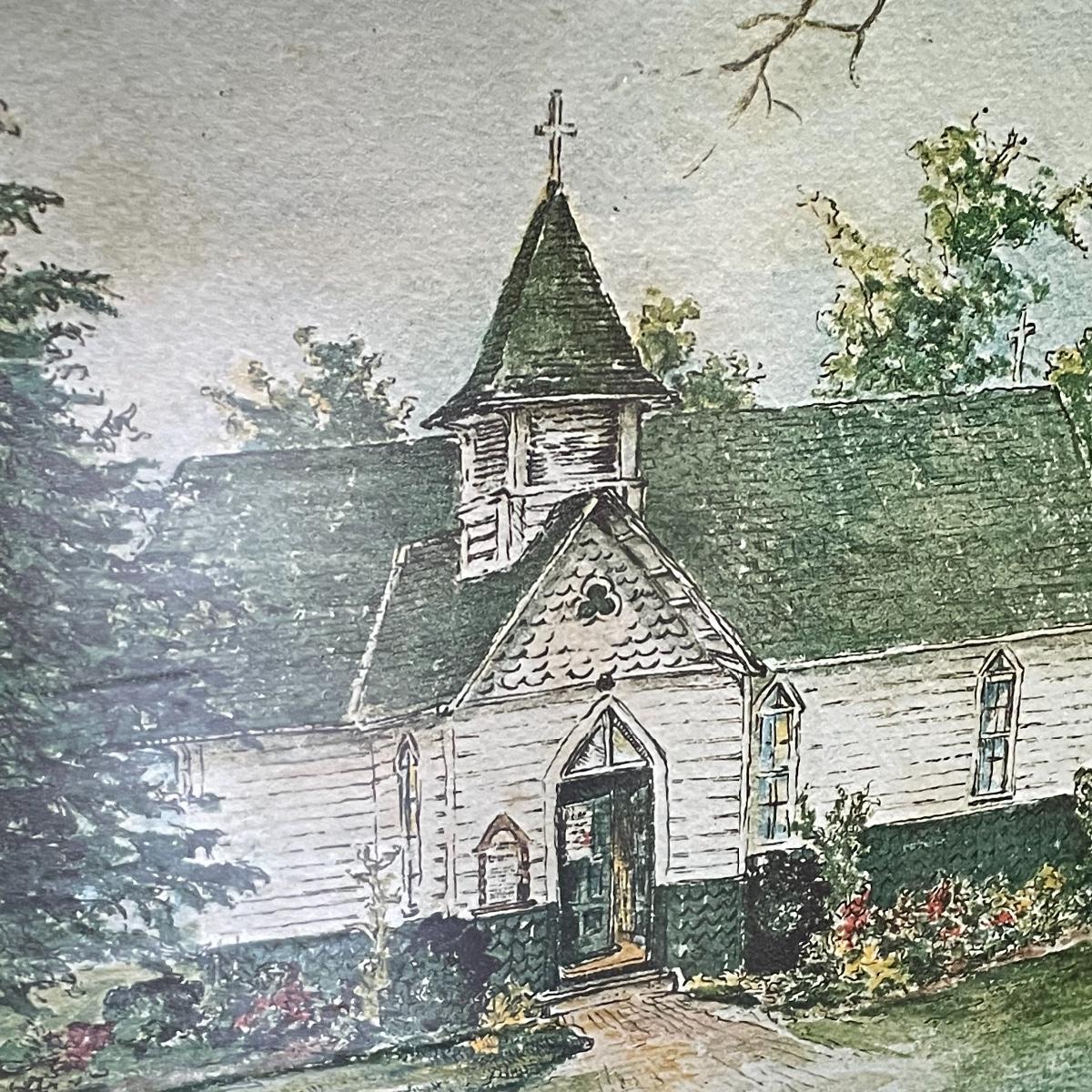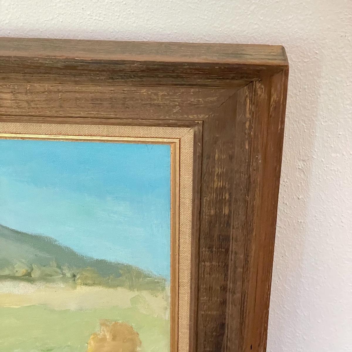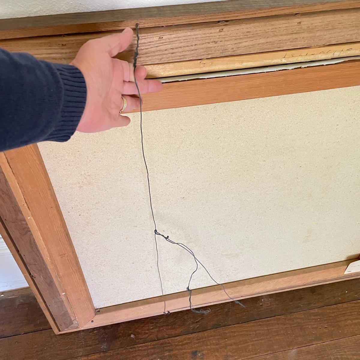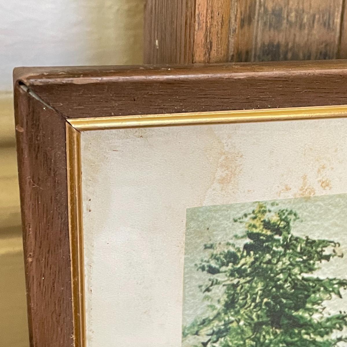 A smaller 14” x 11” print titled St. Mary’s Church by Hattie Barringer, 1977 is housed behind glass with a wood colored metal frame. Art shows some age, see images. The larger piece is similar to acrylic or oil and is signed Thomas. It is shown in images fitting into a large wooden 36” x 30” frame. This canvas art needs to be securely mounted, and the wire would need to be placed horizontally to hang on a wall. See images. Local pick up only.