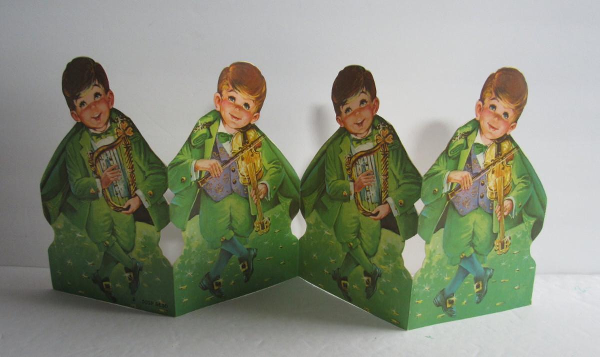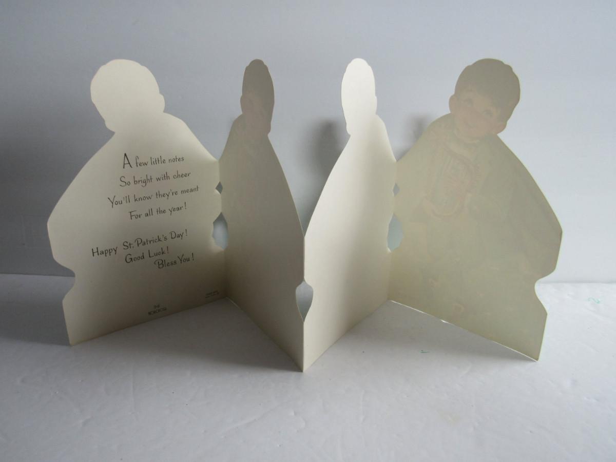 The card is in great shape, is unused and is a fold out. No envelope. The Irish guy's little pet has a broken ear. Shipping available at actual cost plus $5.00 per box handling fee. See our terms for details. All sales final.