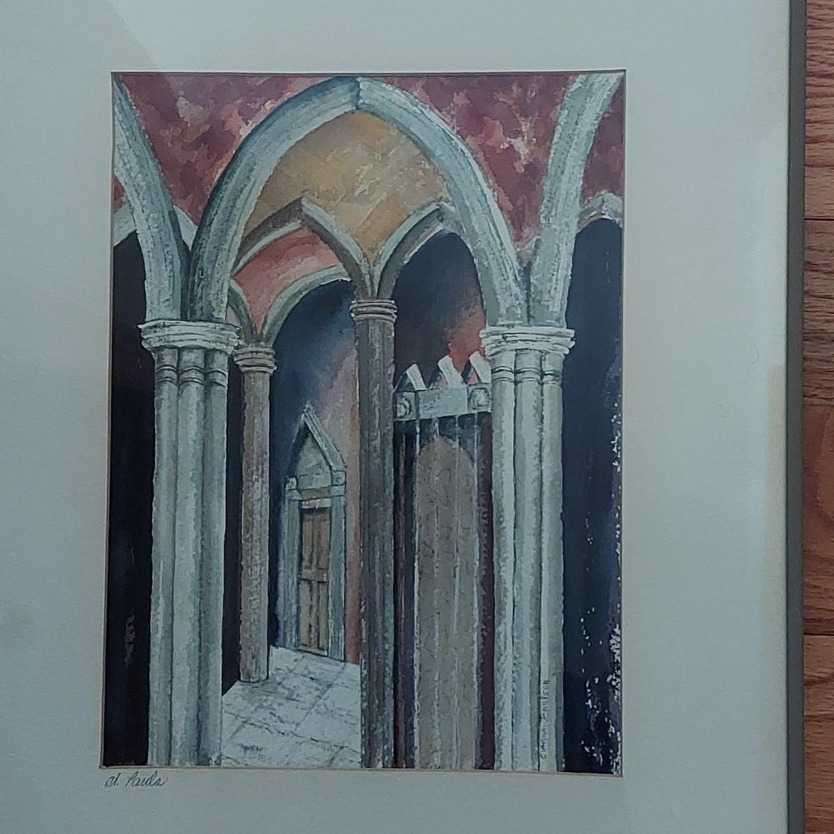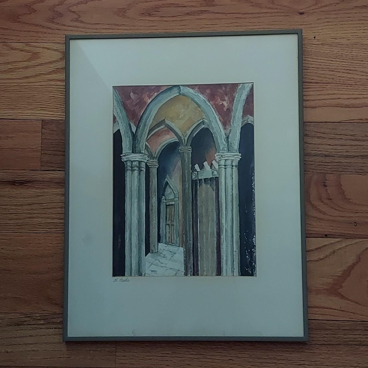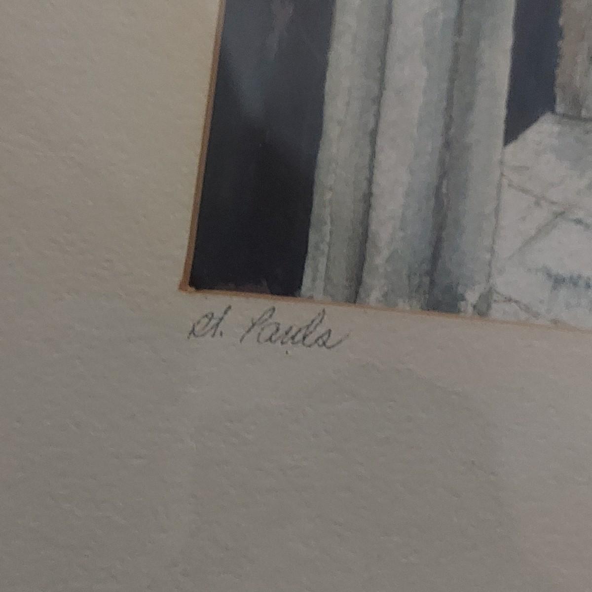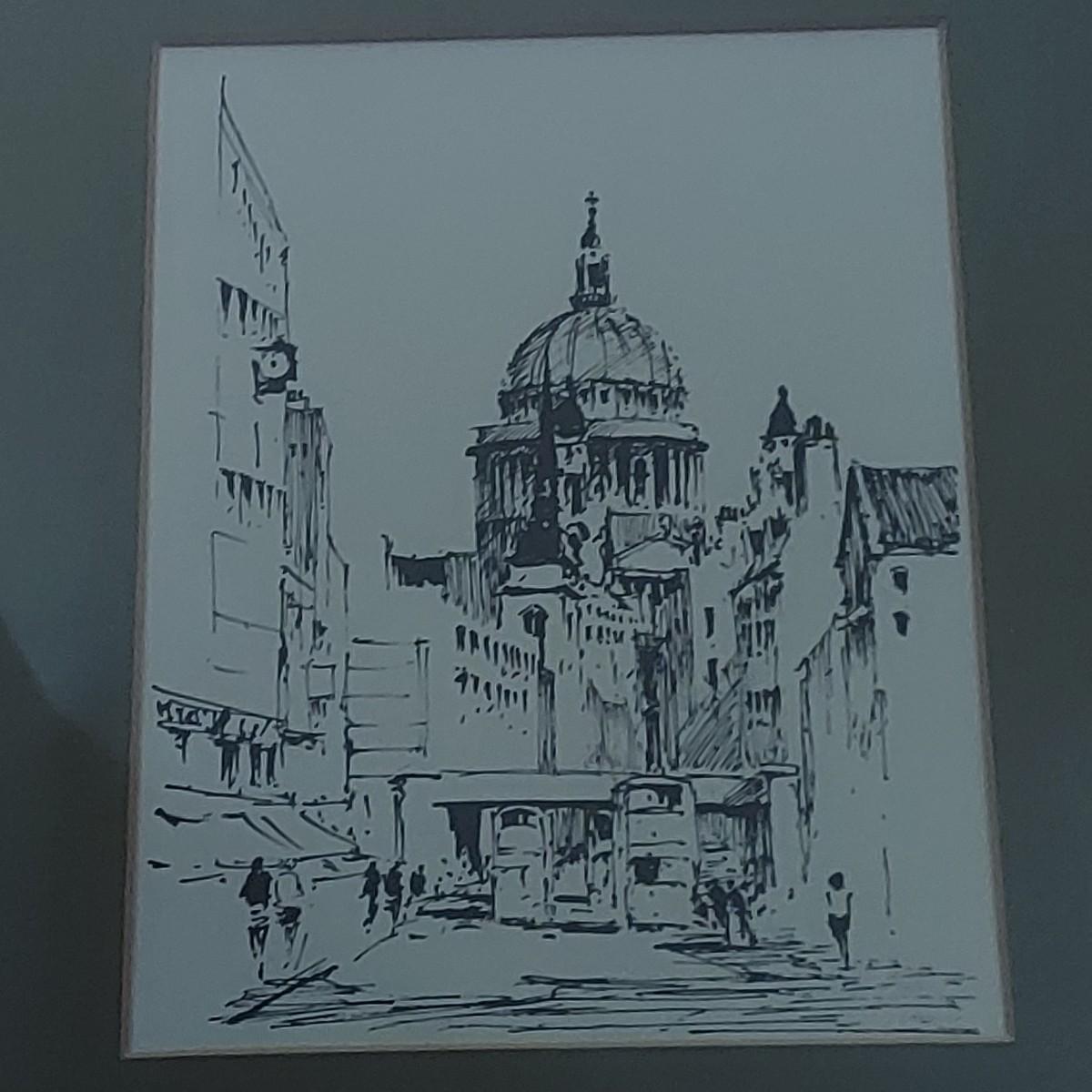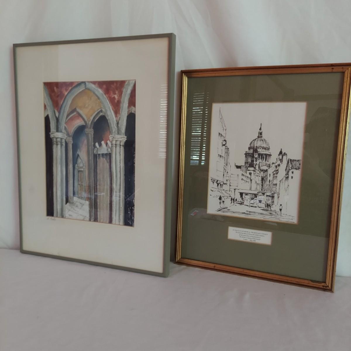 Two framed pieces of art representing St. Paul's Cathedral. The watercolor has a metal frame that measures 15” x 19"H. It has a signature within the art. This item appears to be an original painting. The Edward Wesson sketch is in a gold frame that appears to be wooden and measures 13” x 17"H. This item is likely a print. Both are under glass. Please see photos for details. Shipping available