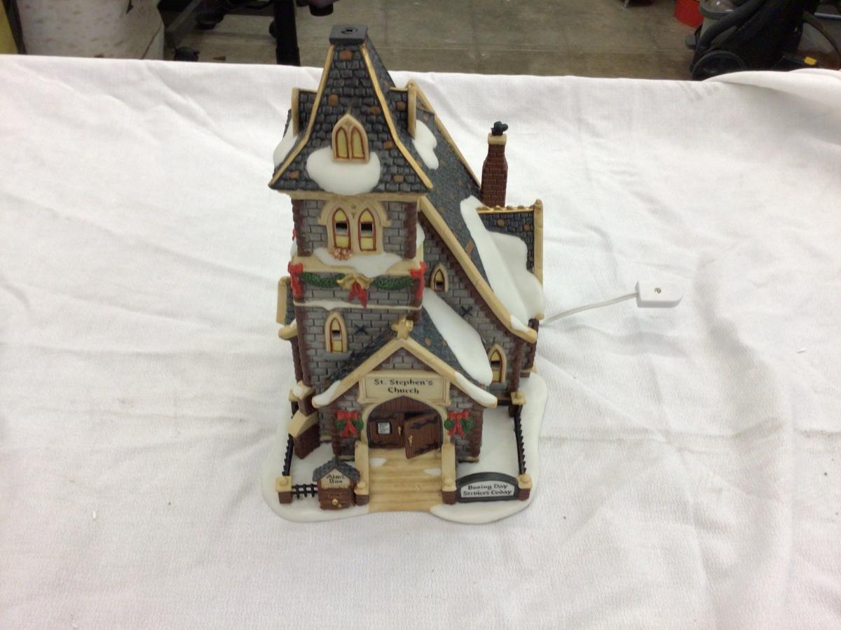St Stephen’s Church Dept. 56 Dickens Village series. Does have box battery operated lights.