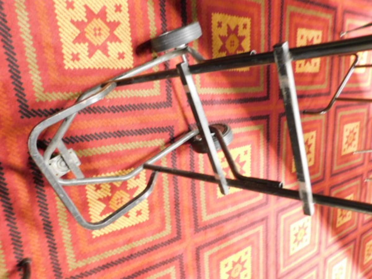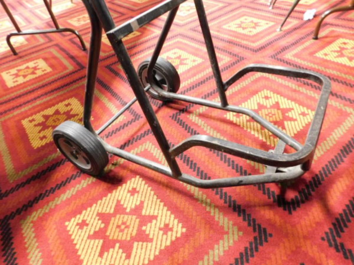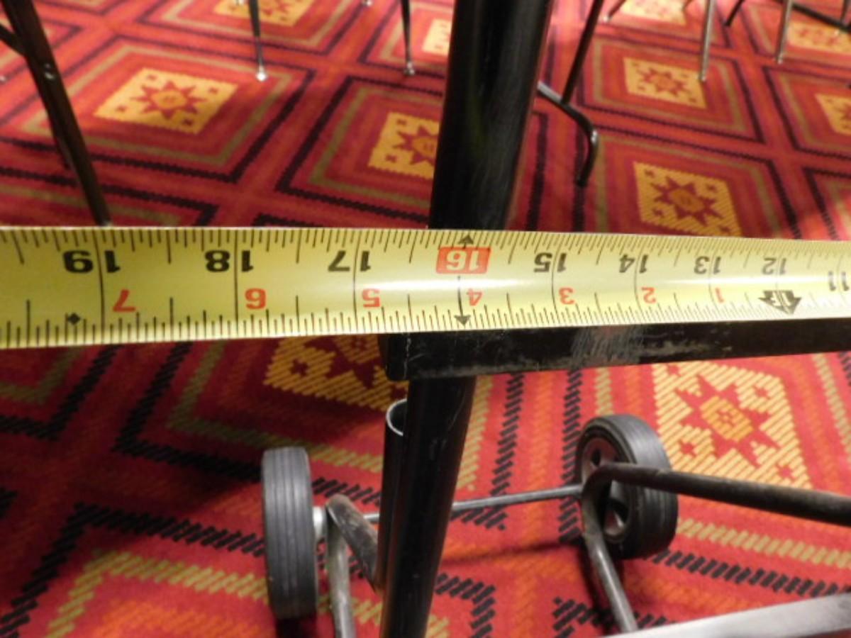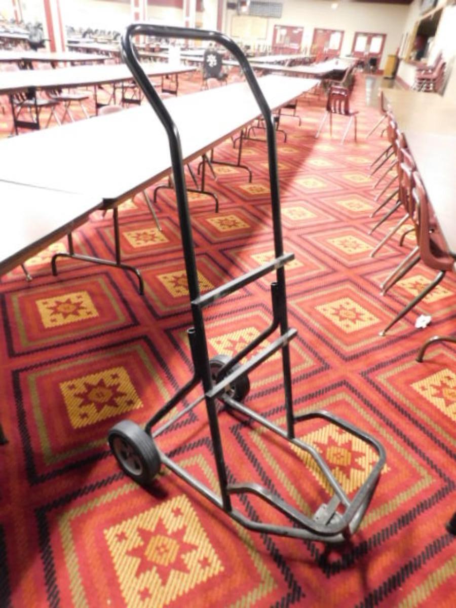 Stack Chair Metal Hand Truck Expect some wear or scratches to finish. Shipping option available via freight or local mover at Buyer's expense. Buyer must have all shipping scheduled within the stated dates and times of pickup. Recommended local mover is Beaty Bros. Moving 828-201-2982