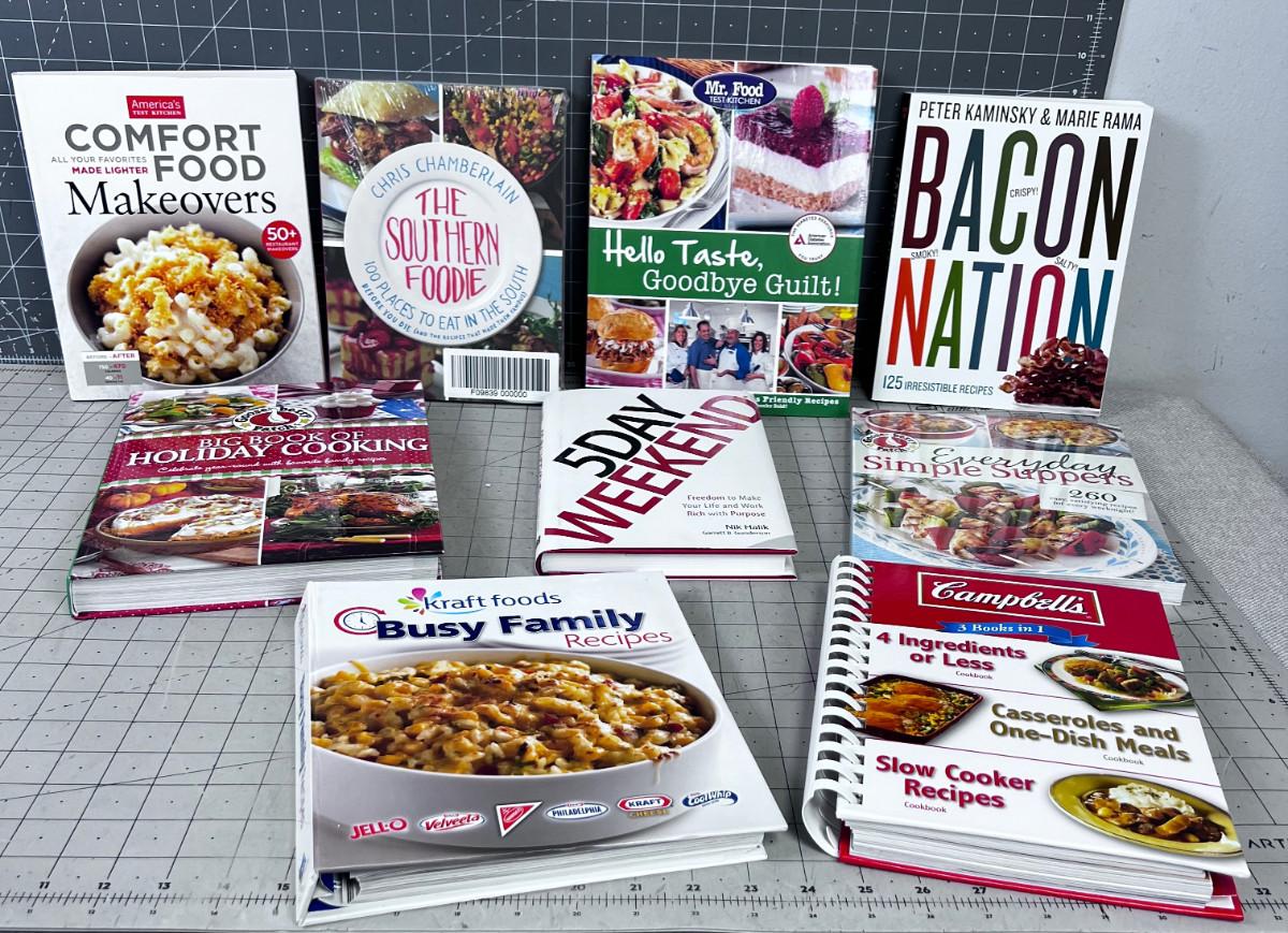 Stack of (10) NICE Comfort Foods Cook Books; Southern, Comfort, Bacon Nation.