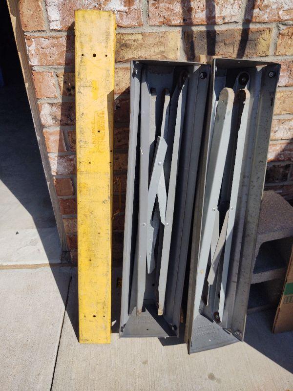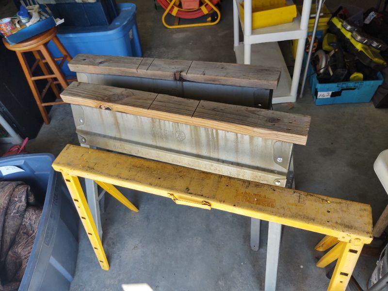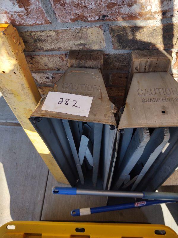 lot 282 - 2 Gray/1 yellow Metal Saw horses