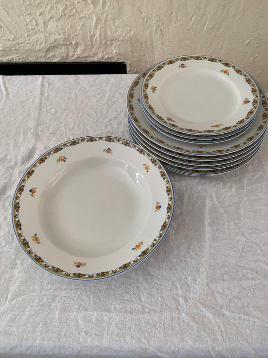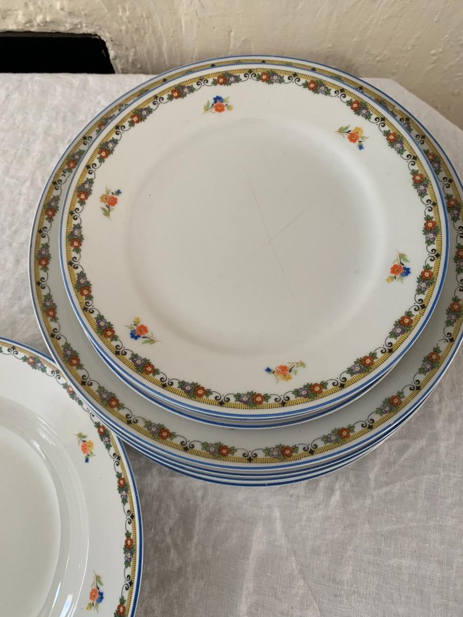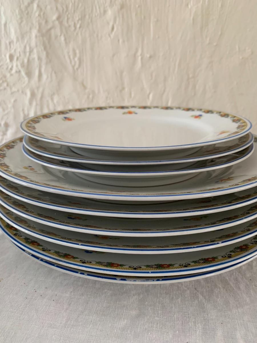 3 smaller, 6 dinner plates. Floral patterned trim, no maker mark.