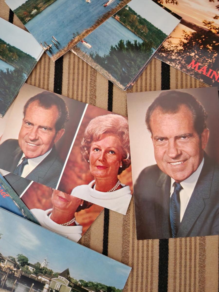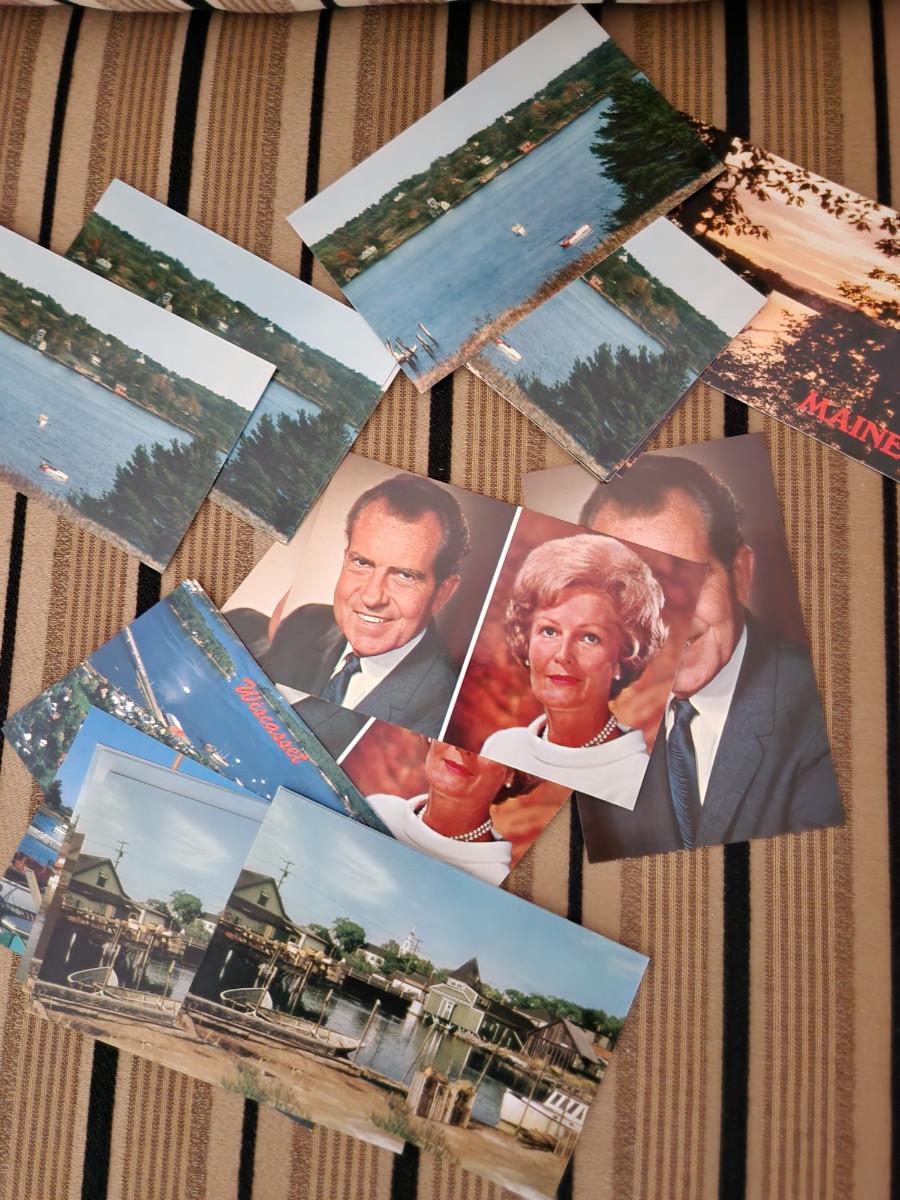 This auction lot is for a Stack of Old Postcards. This gathering includes about 175-ish postcards. Mostly in good, clean condition. There are a bunch of dups, so thinking this might have been a dealer's lot. Nice selection of various types, President Nixon and his wife, Pat, many from Maine and New Hampshire.