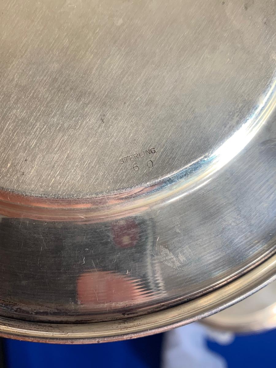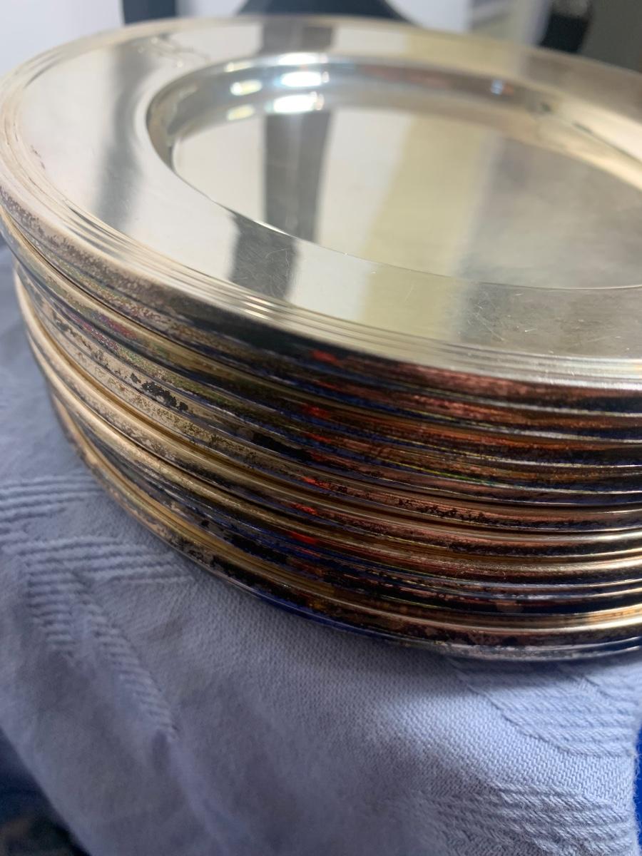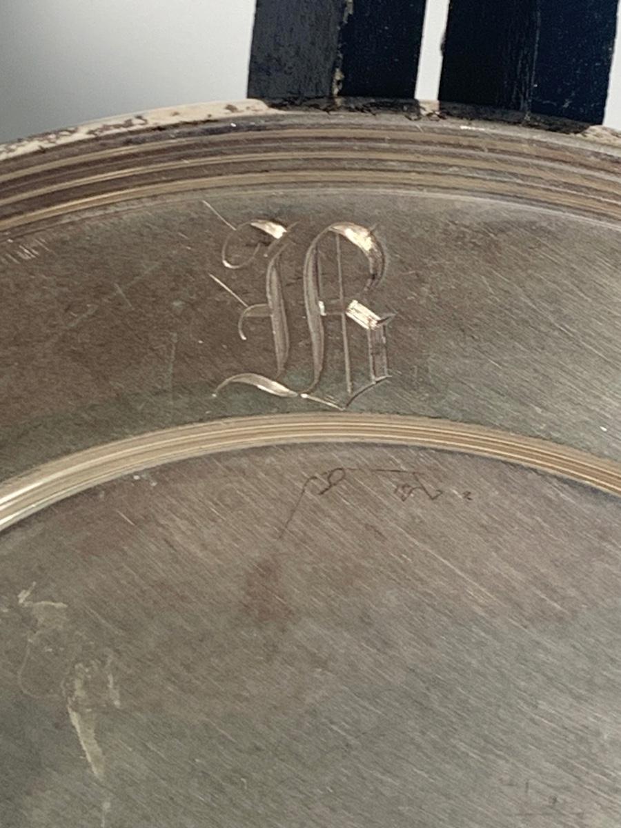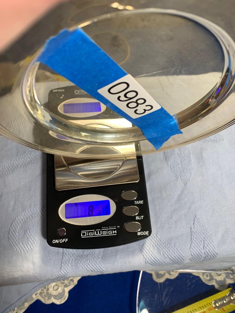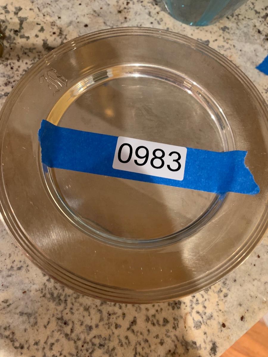 Grams. Total weight for the stack is 959 grams. Each plate is monogrammed.