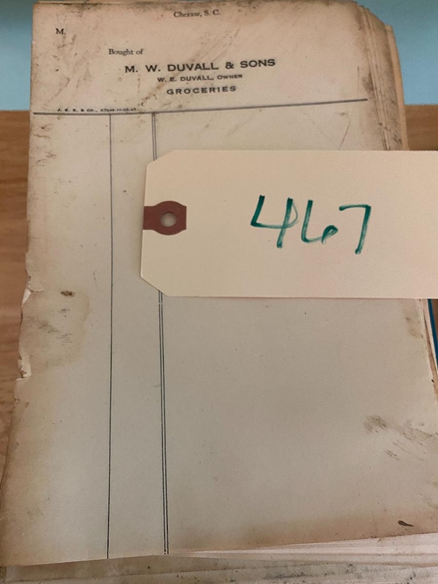 LOT 467 Cheraw SC MW Duvall and Sons Groceries Sales Tickets As Pictured