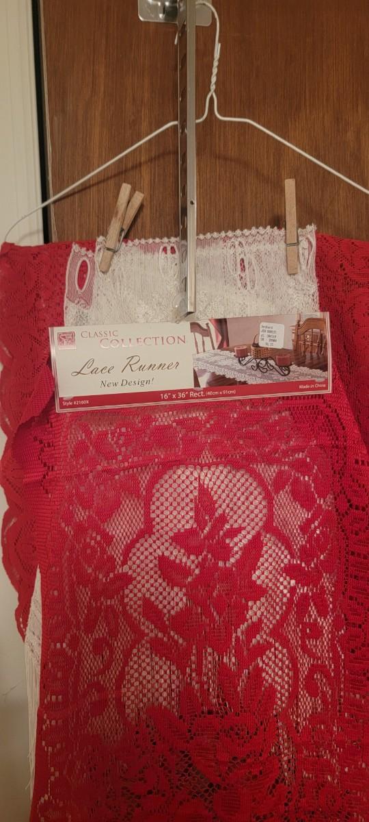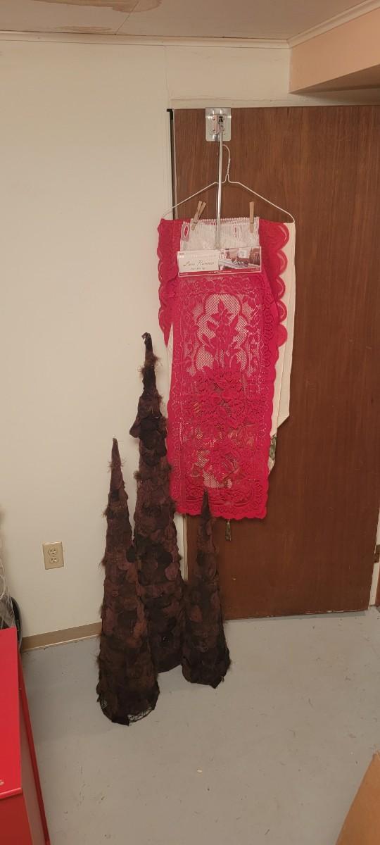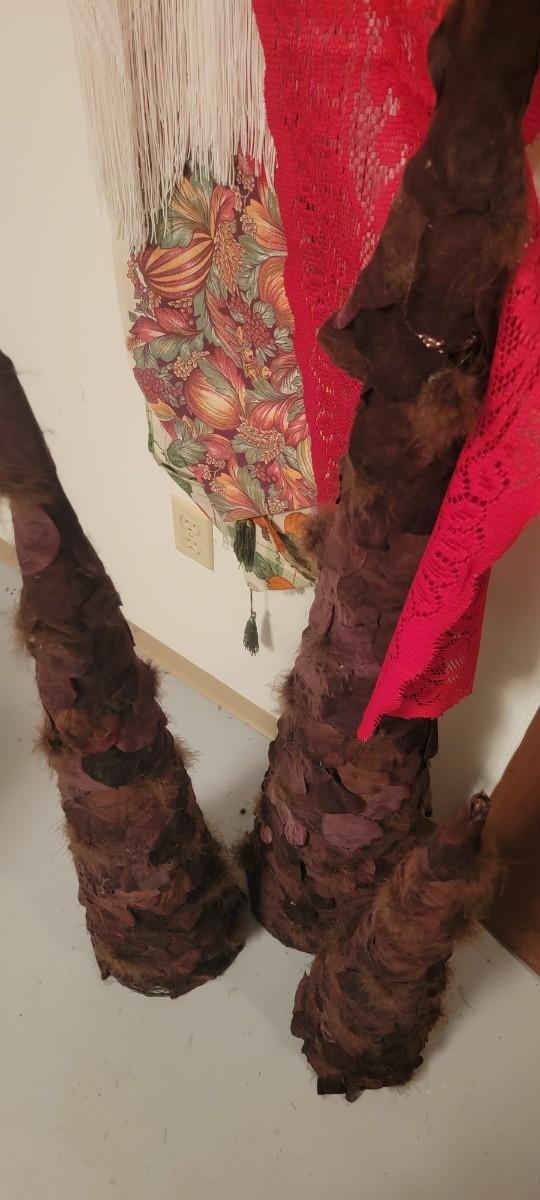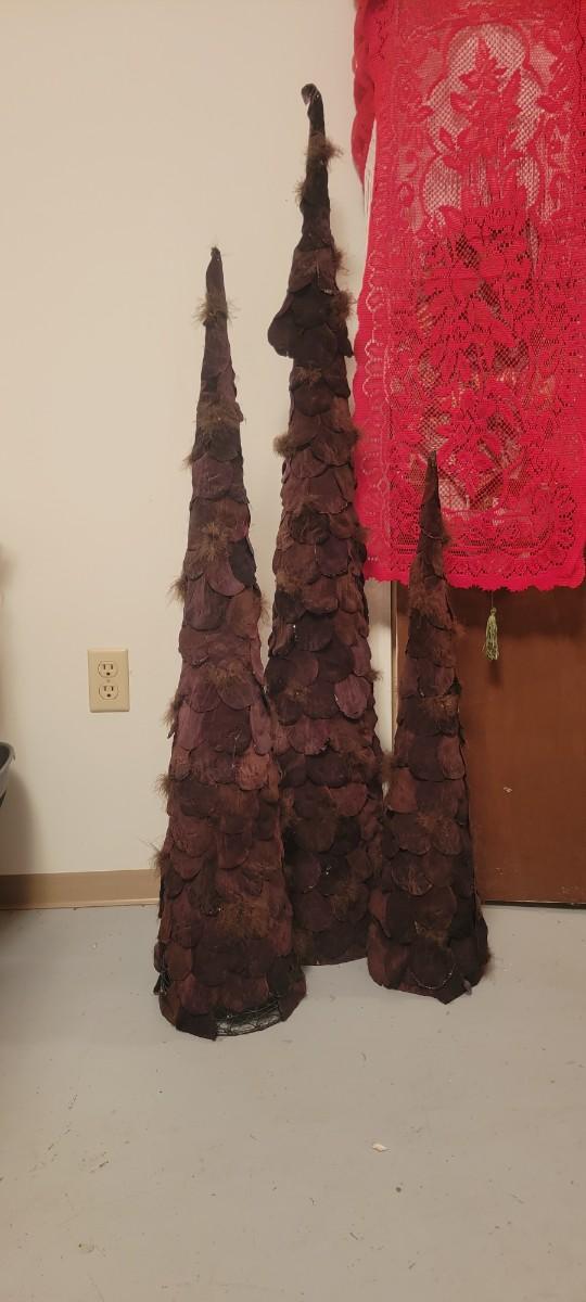 Three leather and feather like trees stackable 30", 40", 50". Pluse lace runners