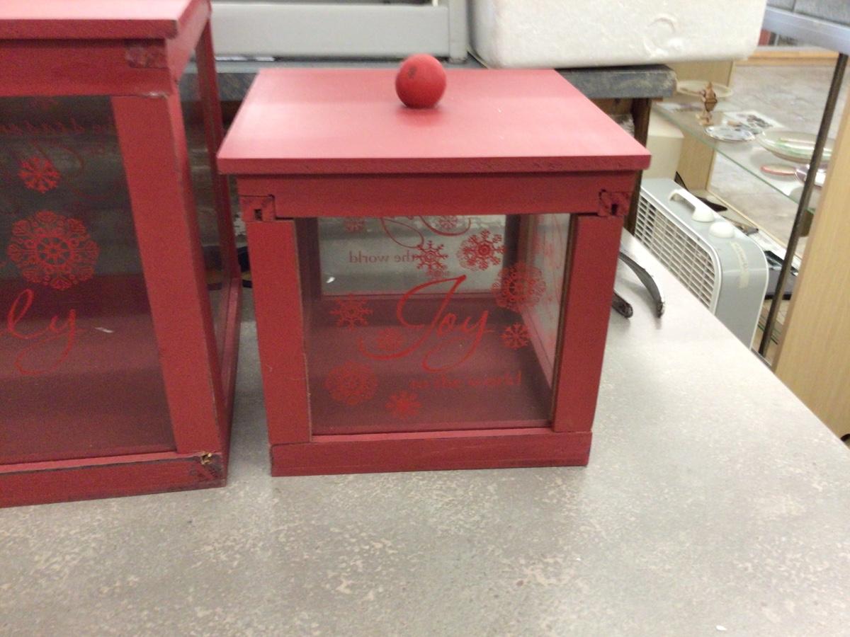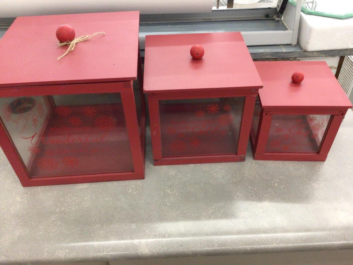 You get three wood and glass decorative boxes with seasonal messages on each. Would look great with electric candle.