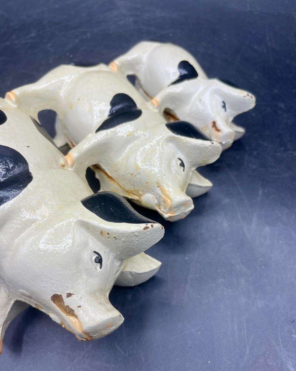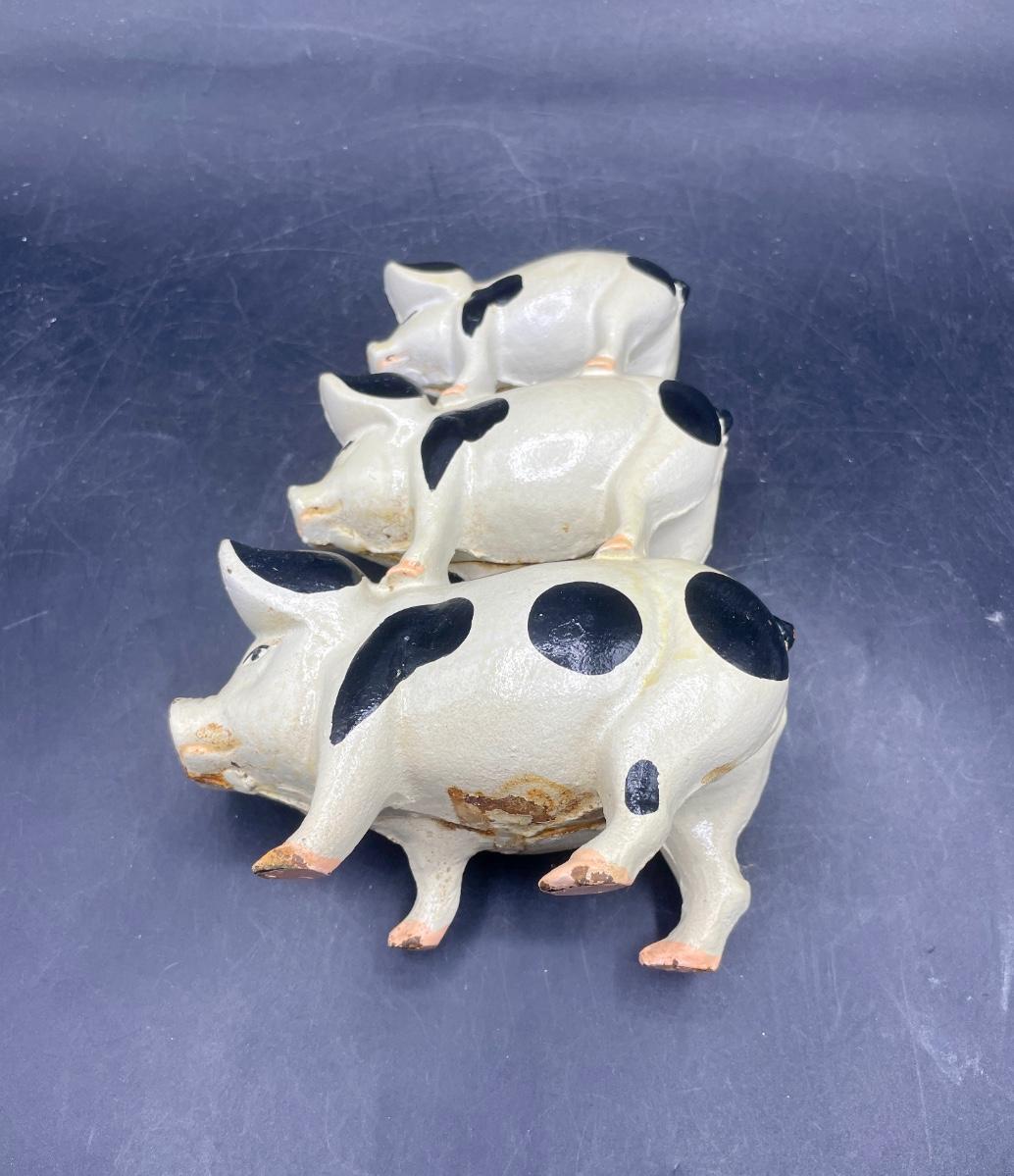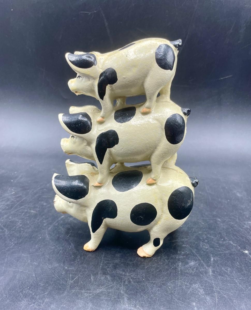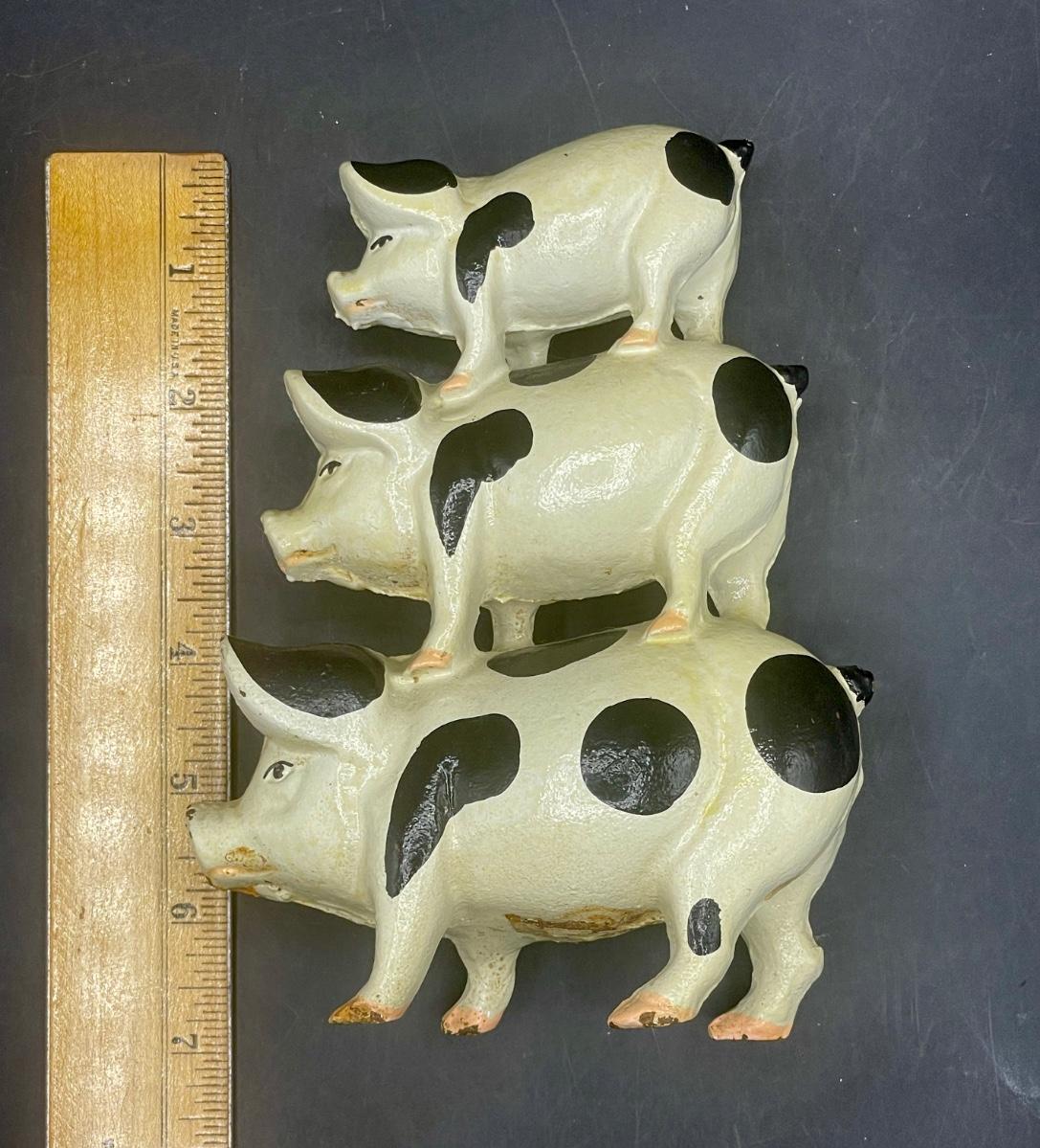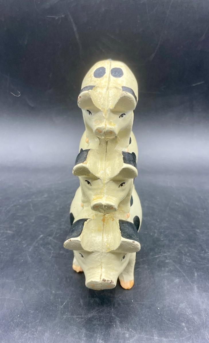 Vintage Cast Iron Black & White 3 Pigs Stacked On Top of Each Other Approx 7"