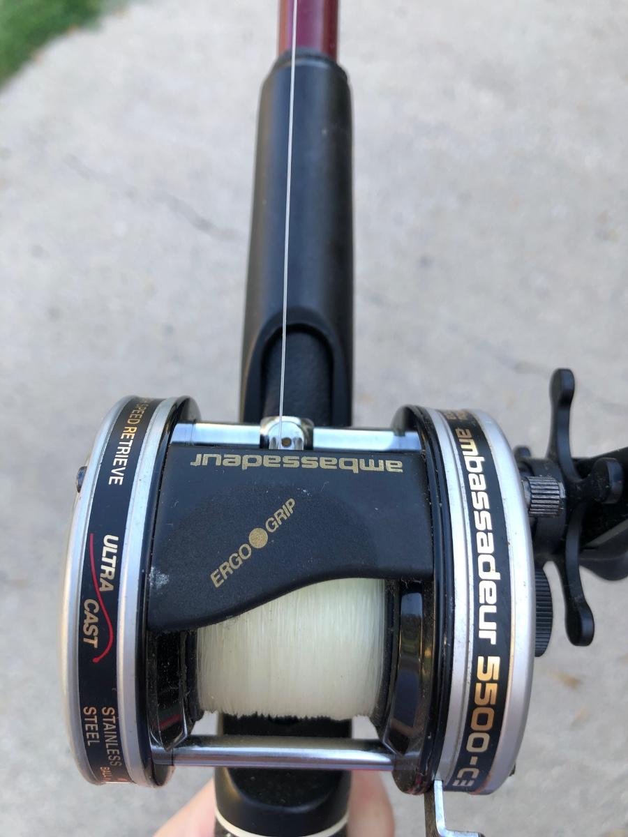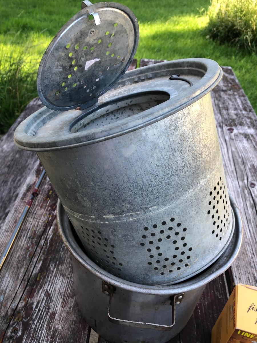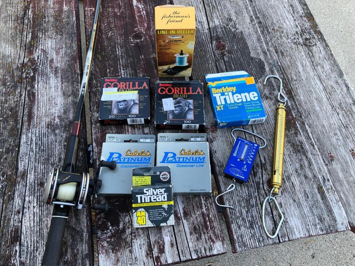 Rod & reel, scales, multiple fishing line & a vintage minnow bucket in a fitting pot. I’m not sure of the line strength, as it has been years.