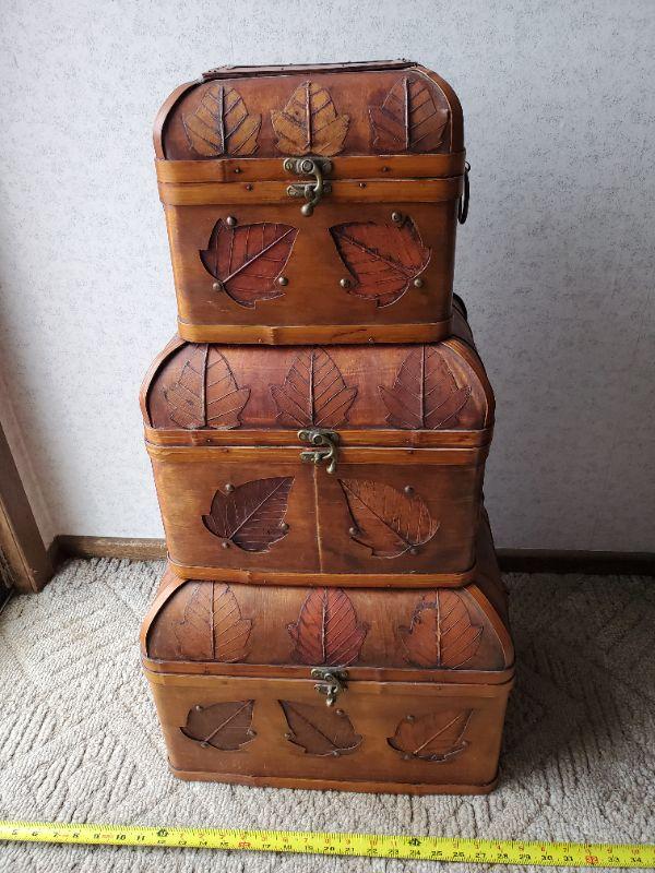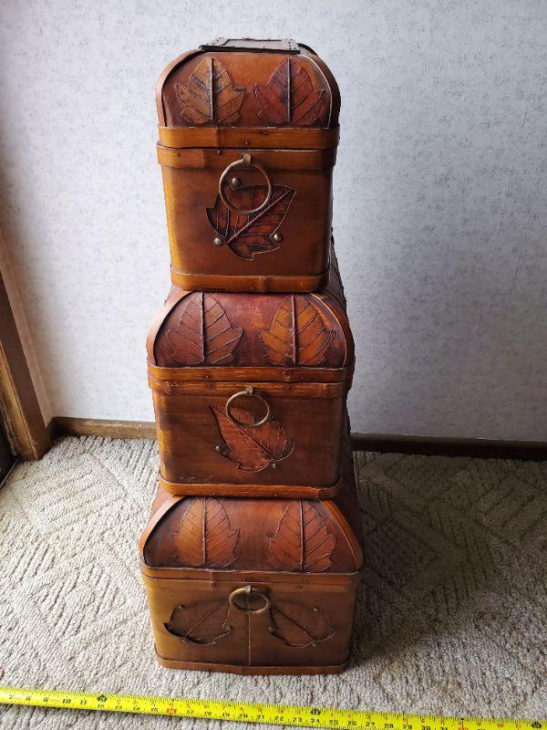 3 boxes CHATEAU EDGEWATER INC , decorative and made with lightweight wood...neutral leaf design.