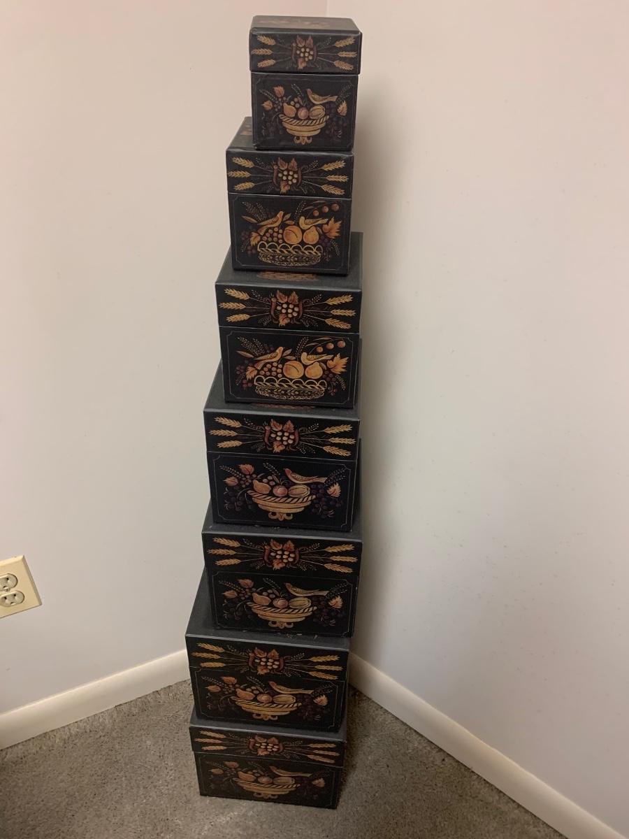 Stacking Graduating Folk Art Style Wood Decor Boxes Theorem Bob’s Boxes