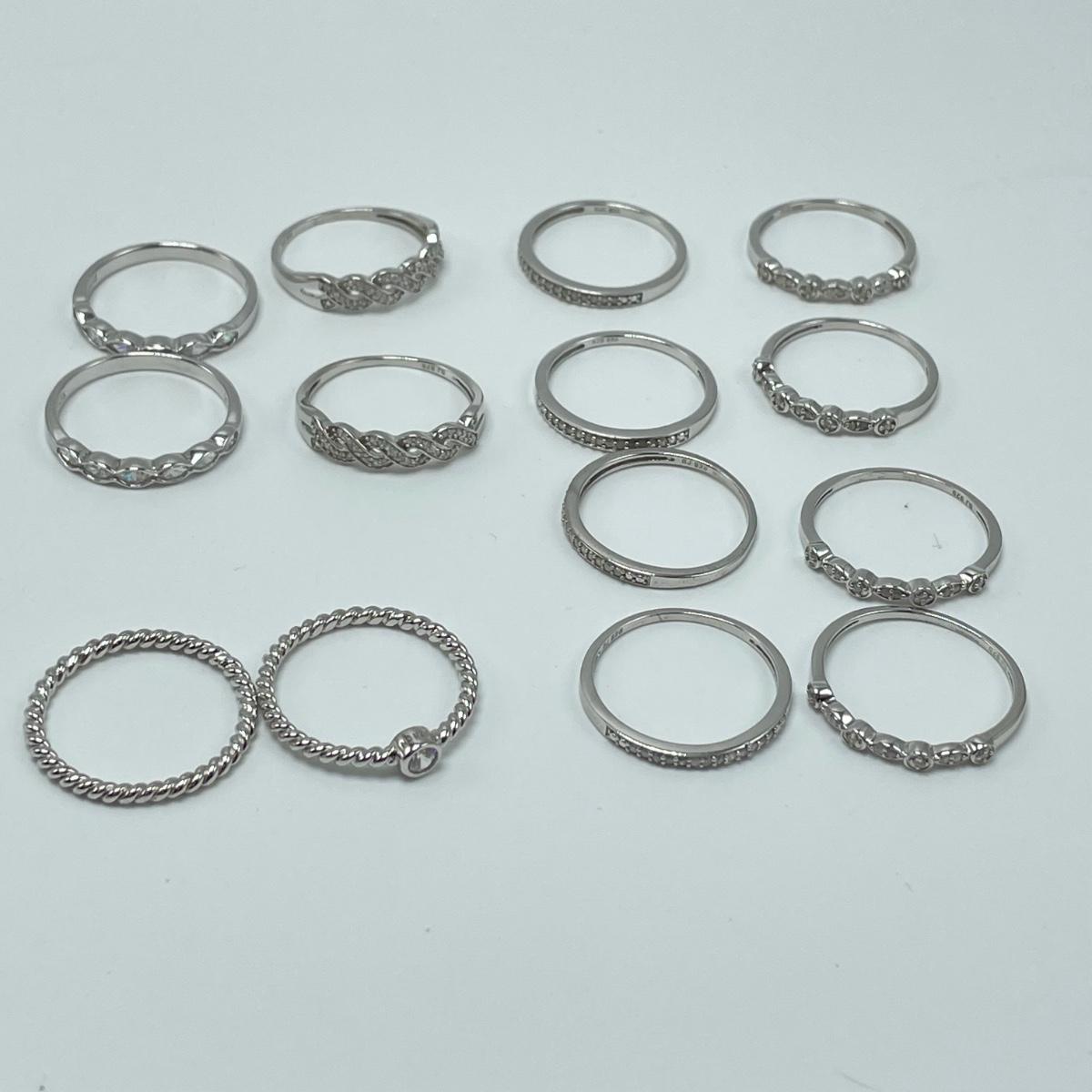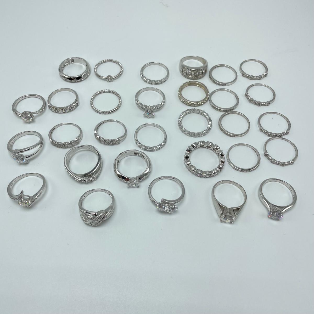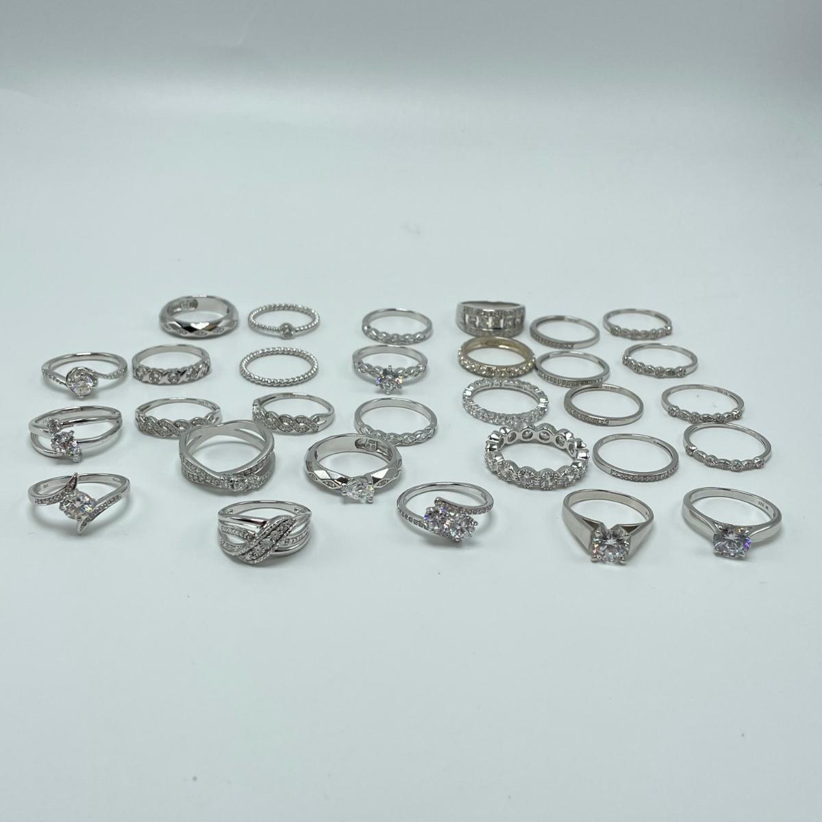 30 rings total included in this lot. All but one is stamped 925, but that roped style band’s partner is stamped 925. Plenty of stackable rings makes the combinations endless! Two rings have a distinct W, possibly for Charles Winston.