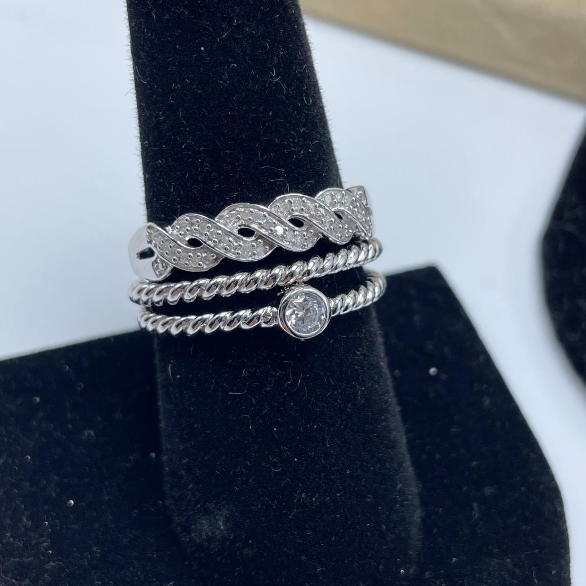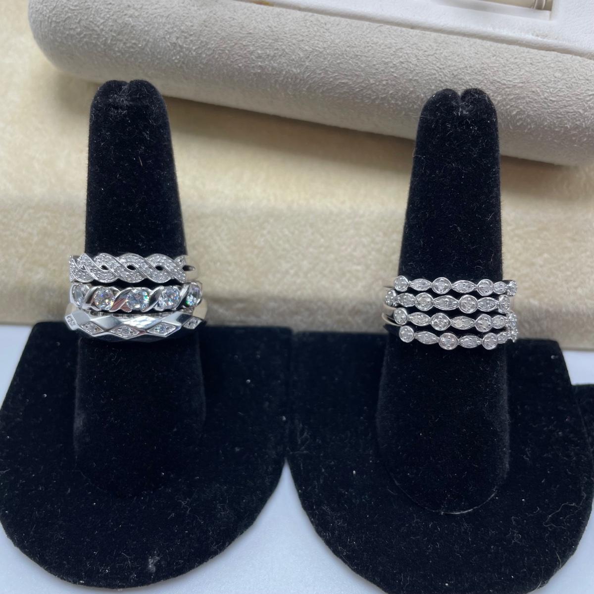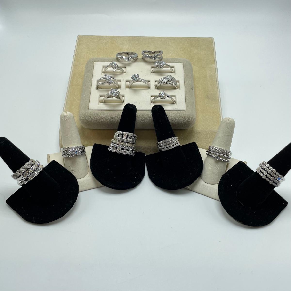 30 rings total included in this lot. All but one is stamped 925, but that roped style band’s partner is stamped 925. Plenty of stackable rings makes the combinations endless! Two rings have a distinct W, possibly for Charles Winston.