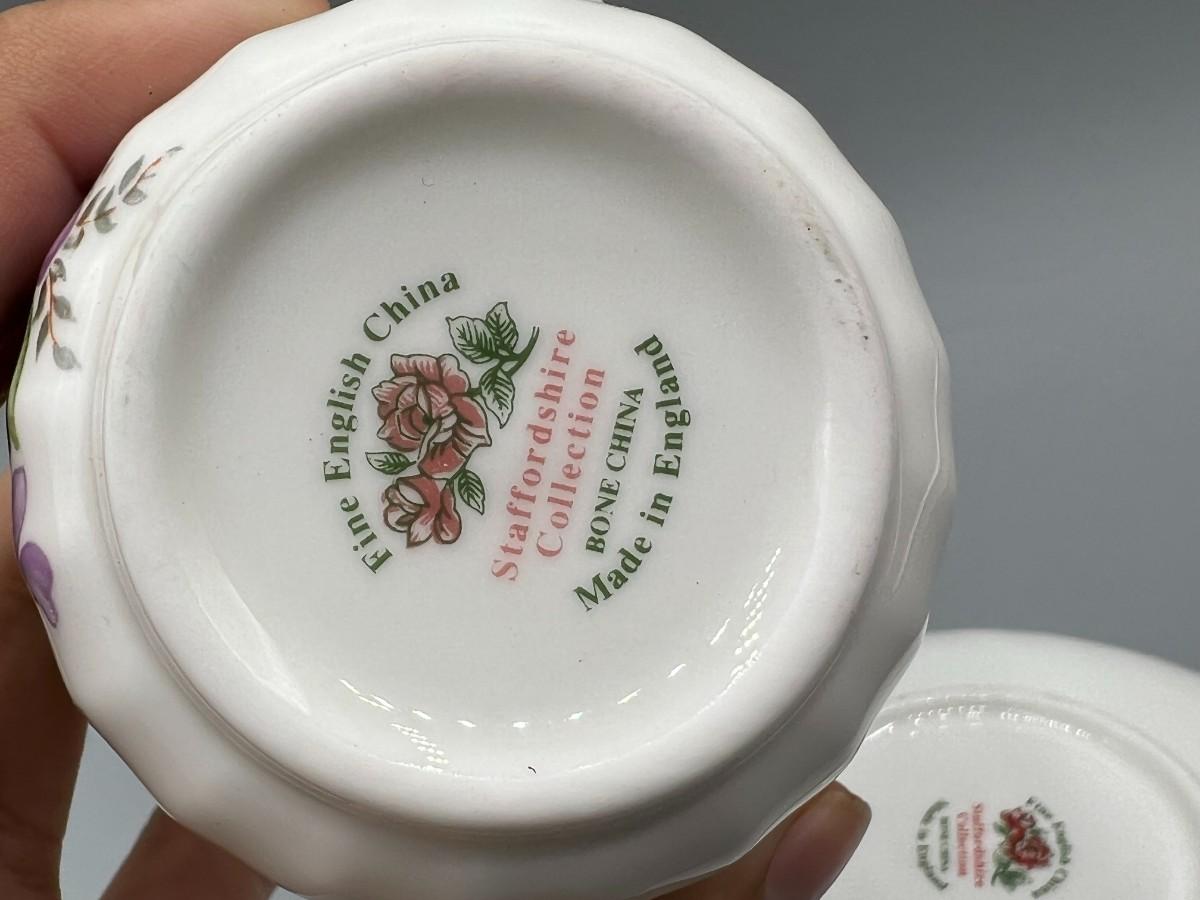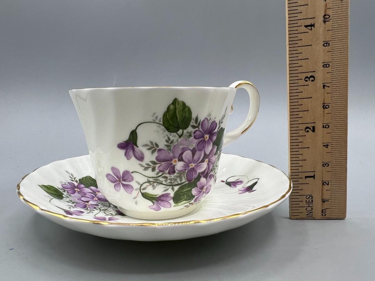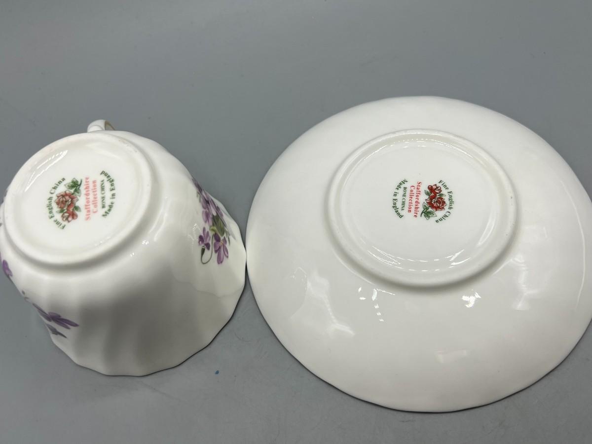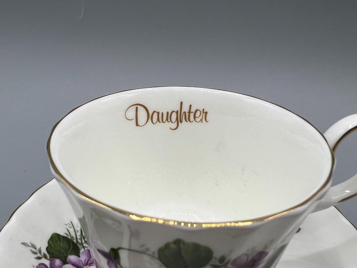 Staffordshire Collection Purple Violet Flowers Daughter Gift Teacup & Saucer. In good condition.