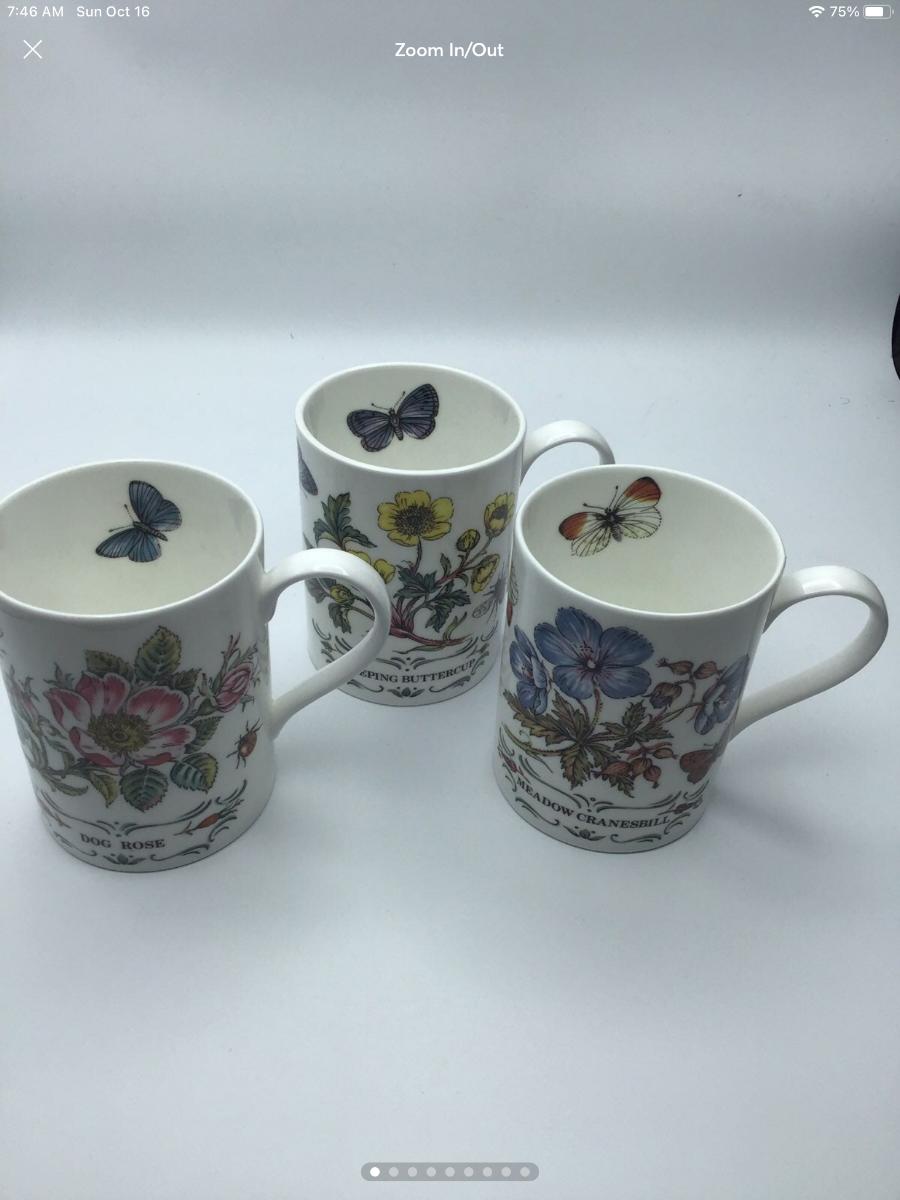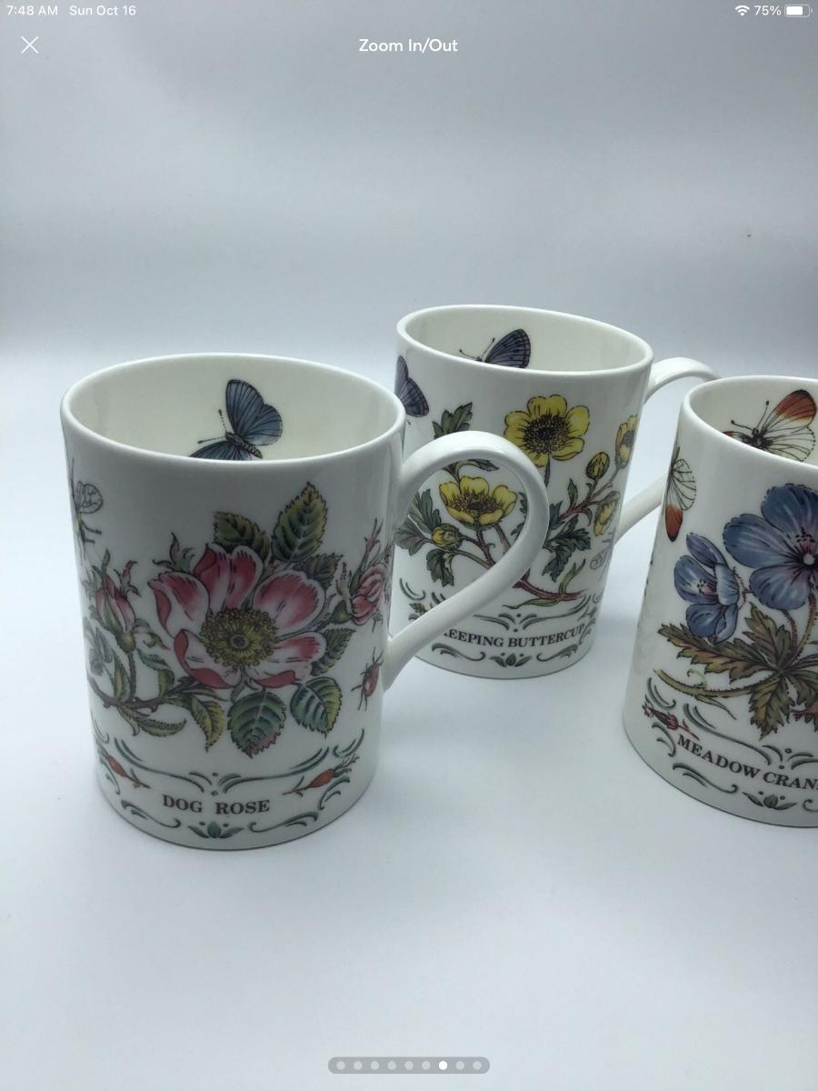 STAFFORDSHIRE Elizabethan Tea Cups Butterfly Floral
