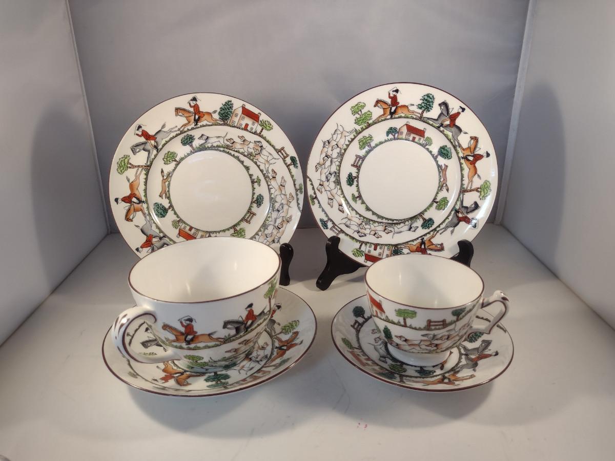 Staffordshire Fox Hunt Design China- 6 Pieces