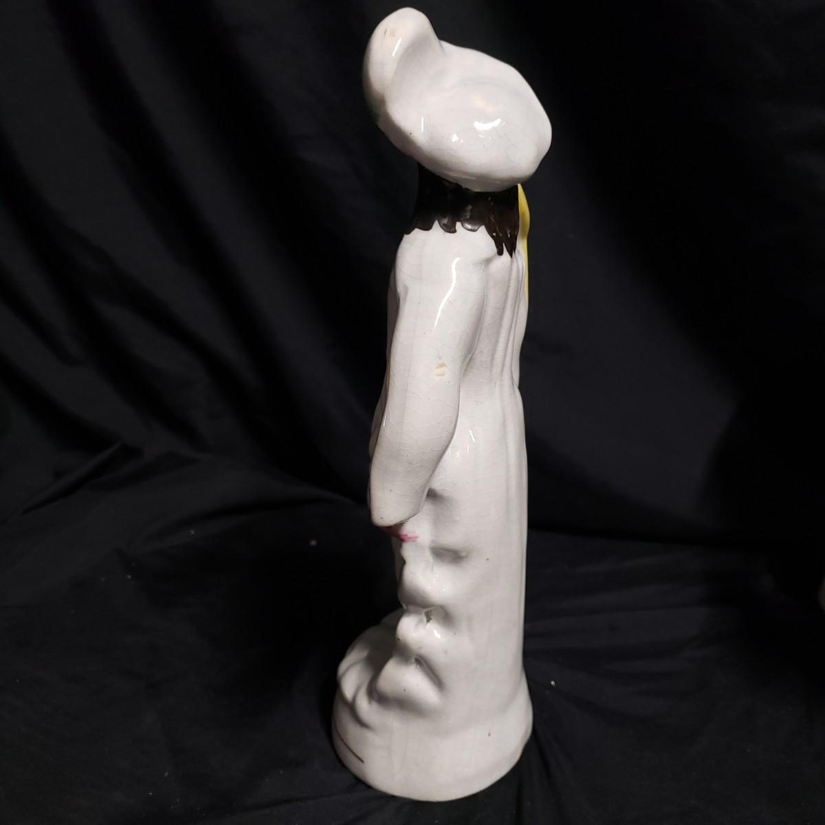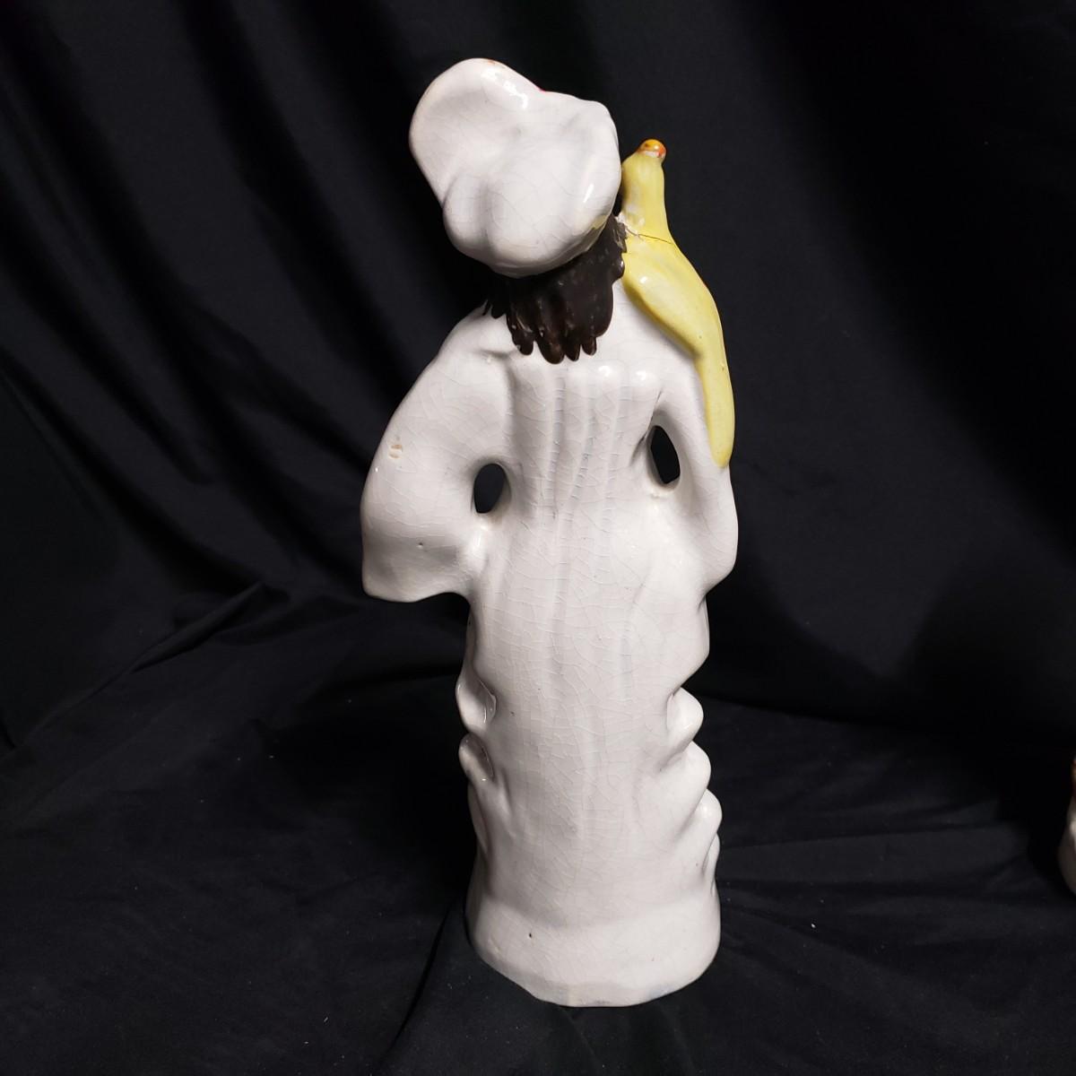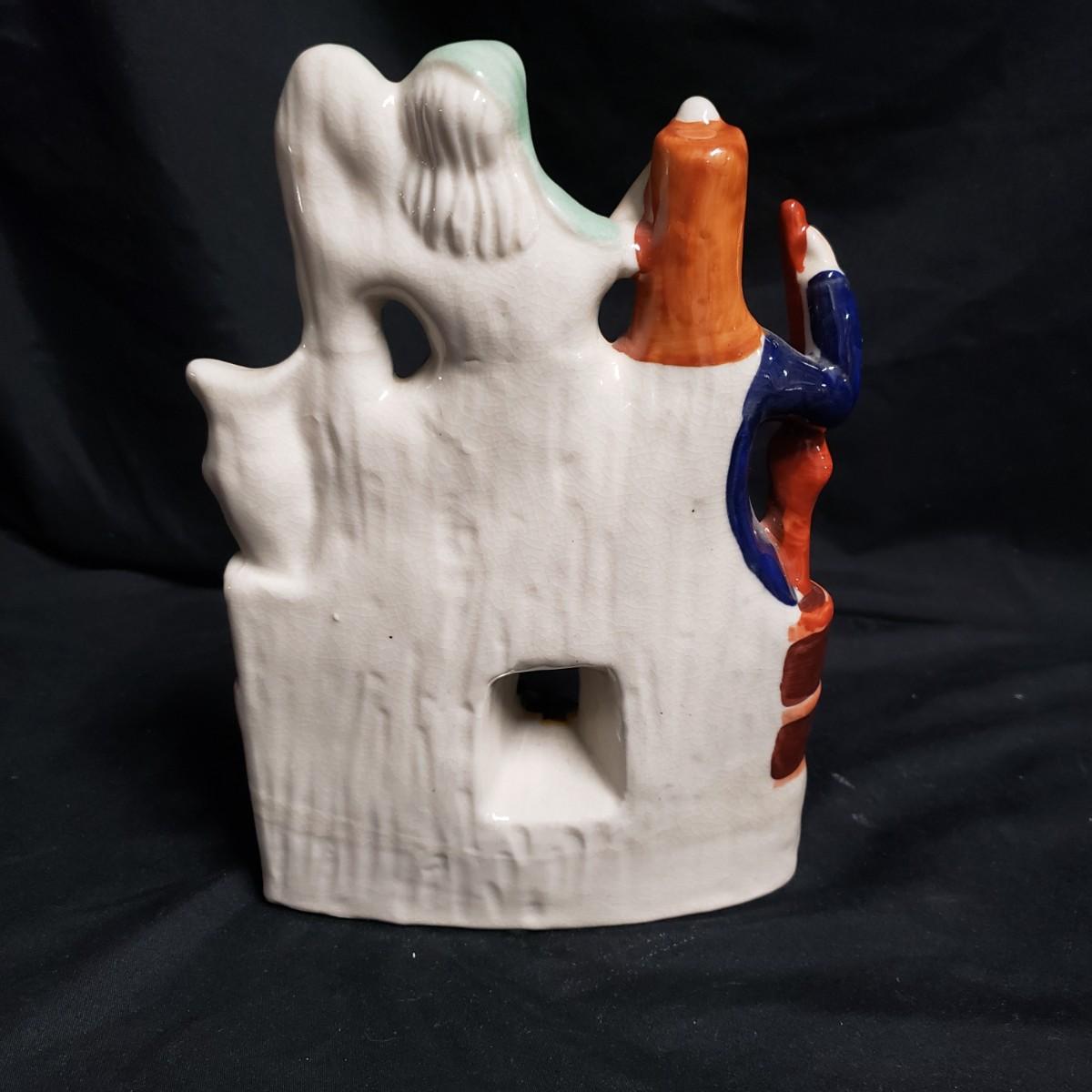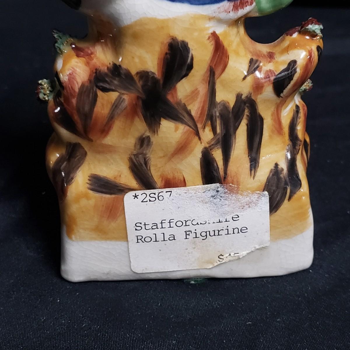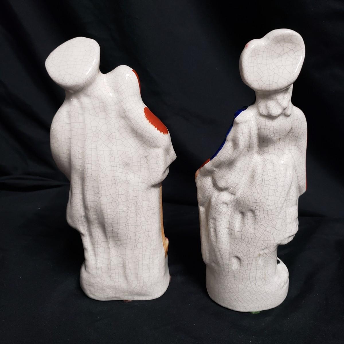 This six piece, possibly Staffordshire figurines feature Highland Lad and Lass, Highland Jessie, Rolla Circus Strong Man, Dick Turpin and a man and his parrot. The Highland figurines measure approximately 4" x 2" x 8"H. Unfortunately, the parrot wanted to fly off and broke off the man's shoulder. The circus strong man holding a woman is missing an arm and leg, yet the show must go on!