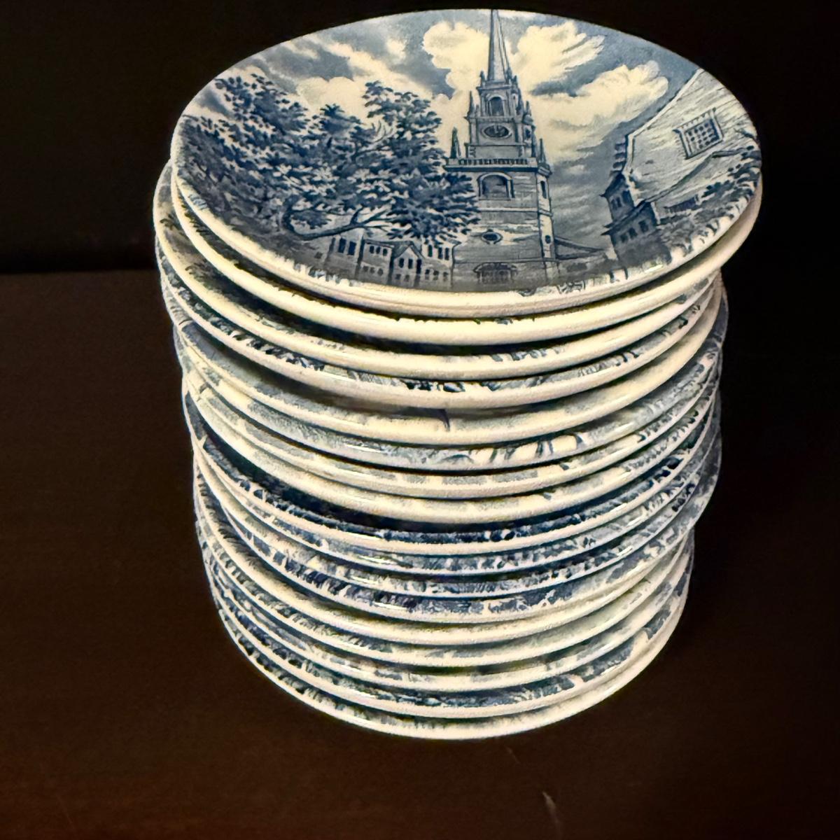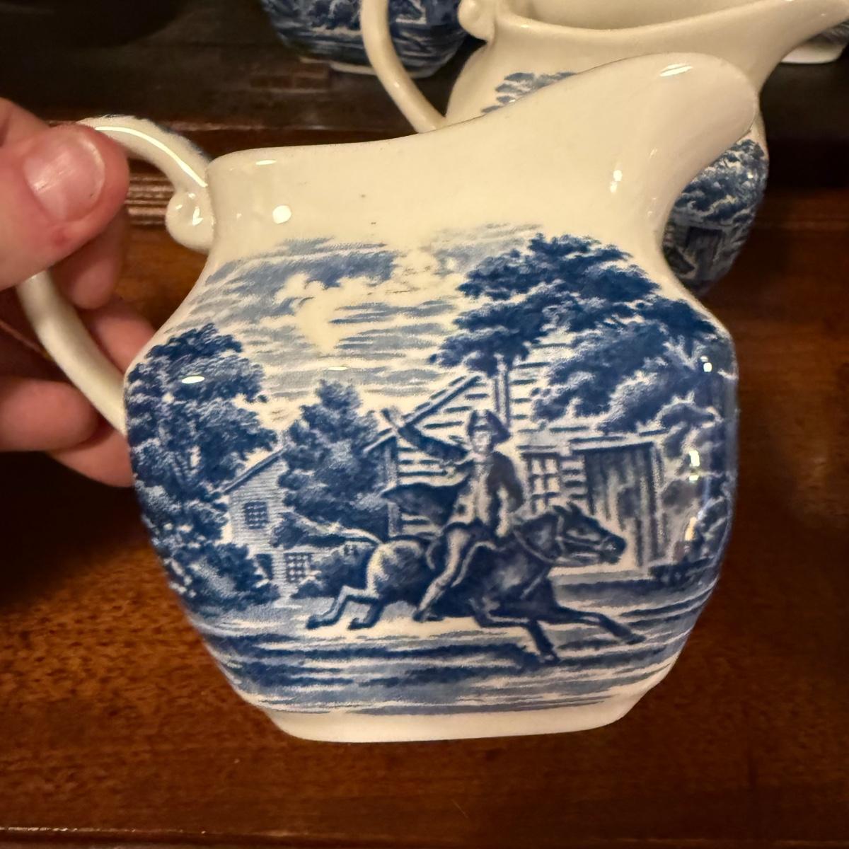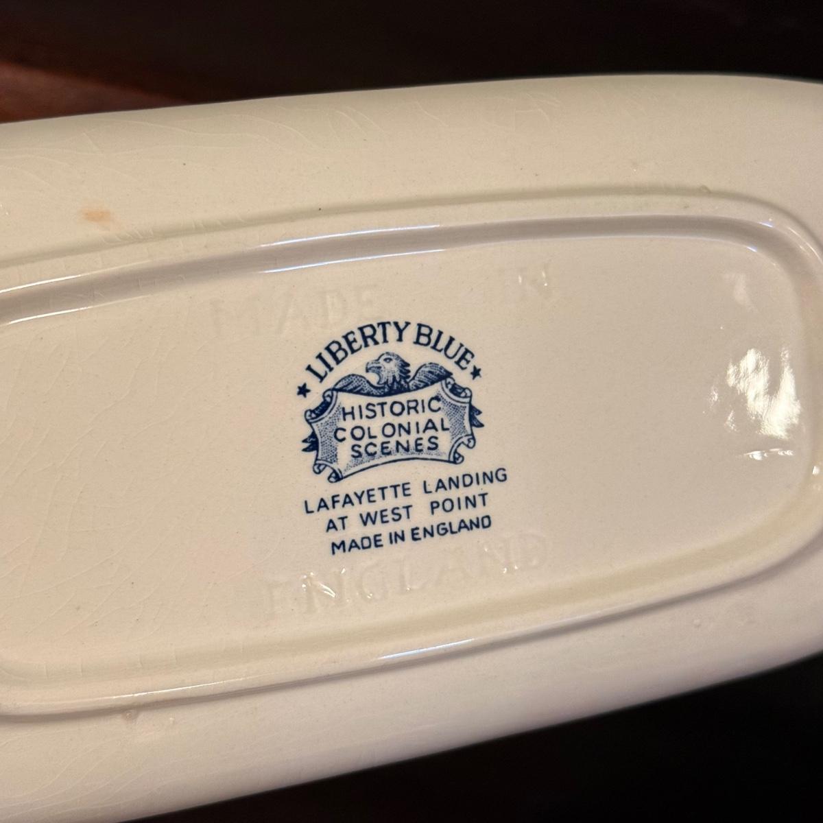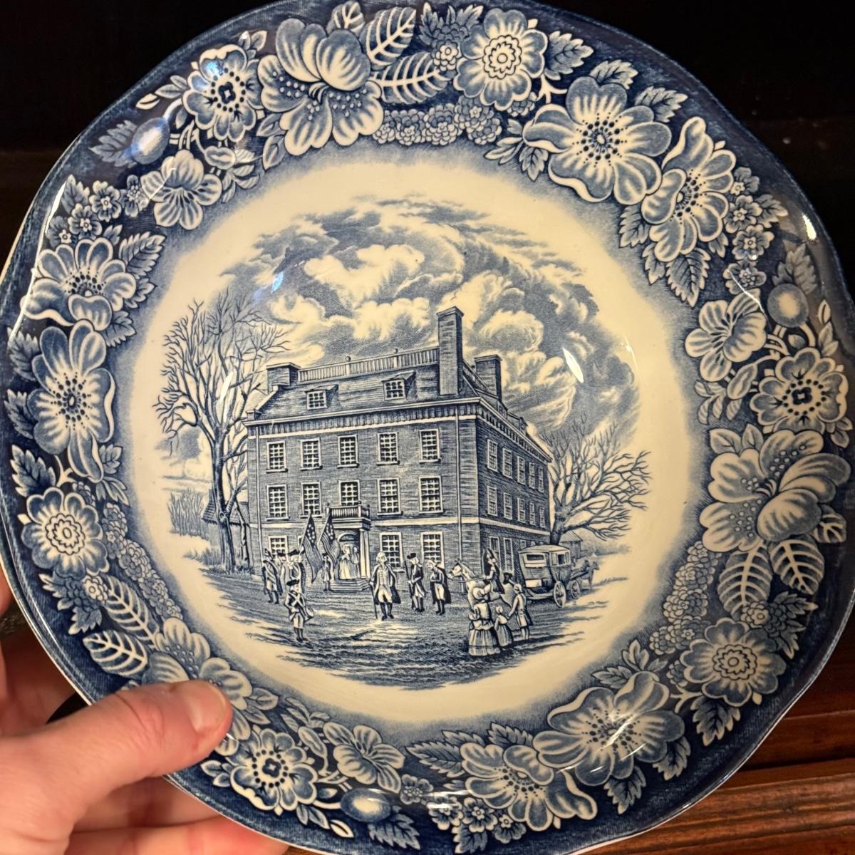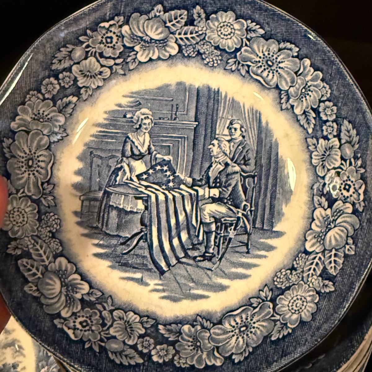 200+ pieces of Staffordshire ironstone dishes in their Liberty Blue pattern. this large collection includes five sizes of plates (4”, 6”, 7”, 9”, 10”), plus multiple bowls, cups, saucers, serving plates, salt and pepper shakers, and more. Please see photos for inventory. All dishes were not thoroughly inspected, but only two chips were noticed.
