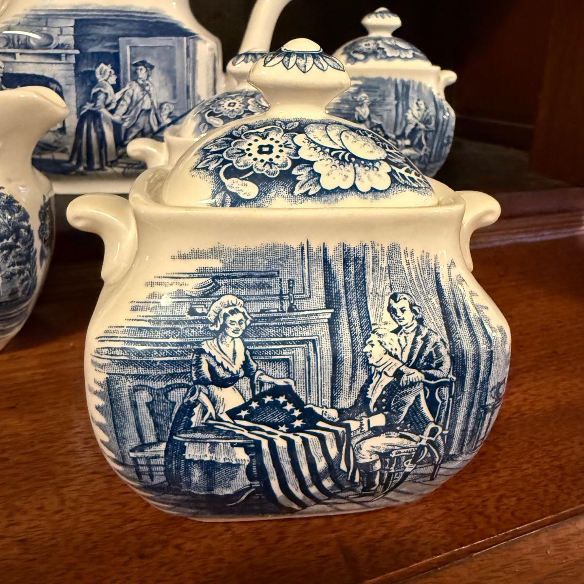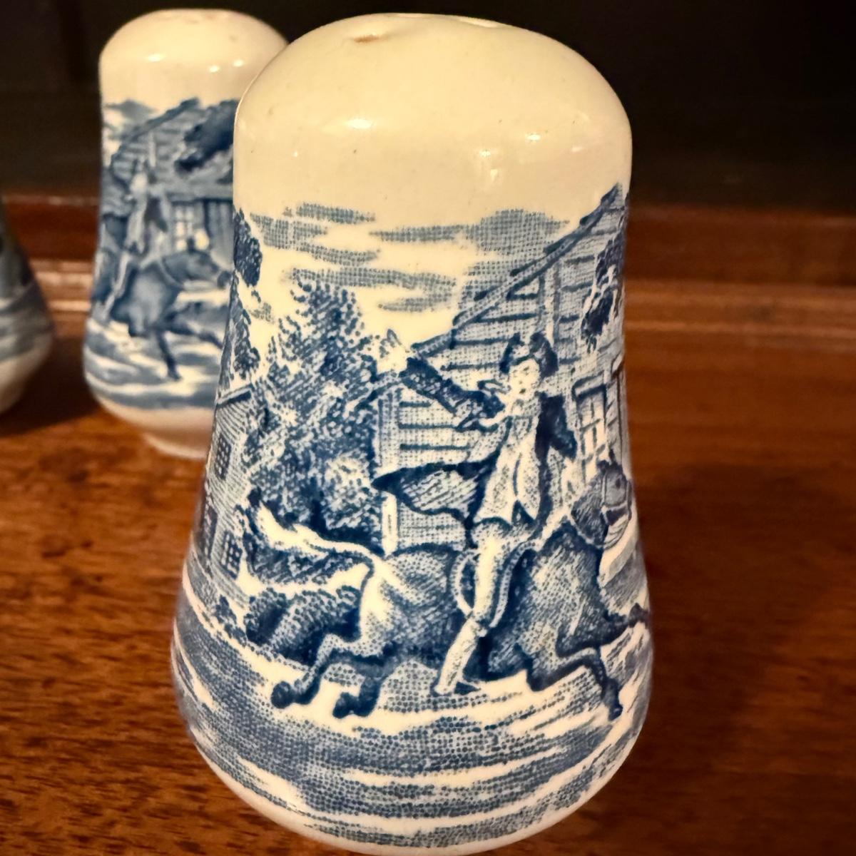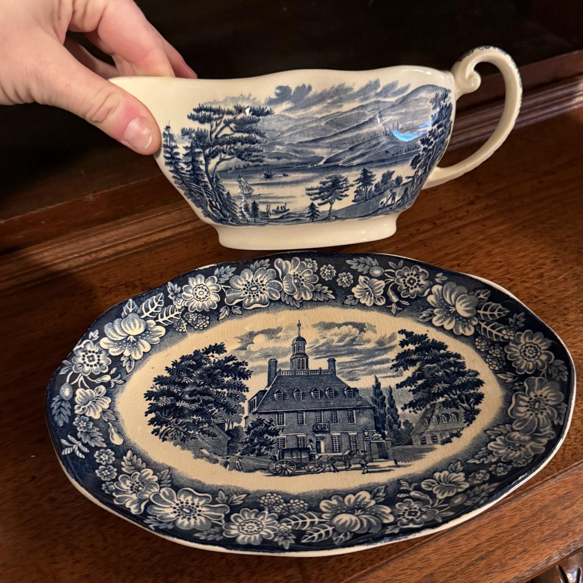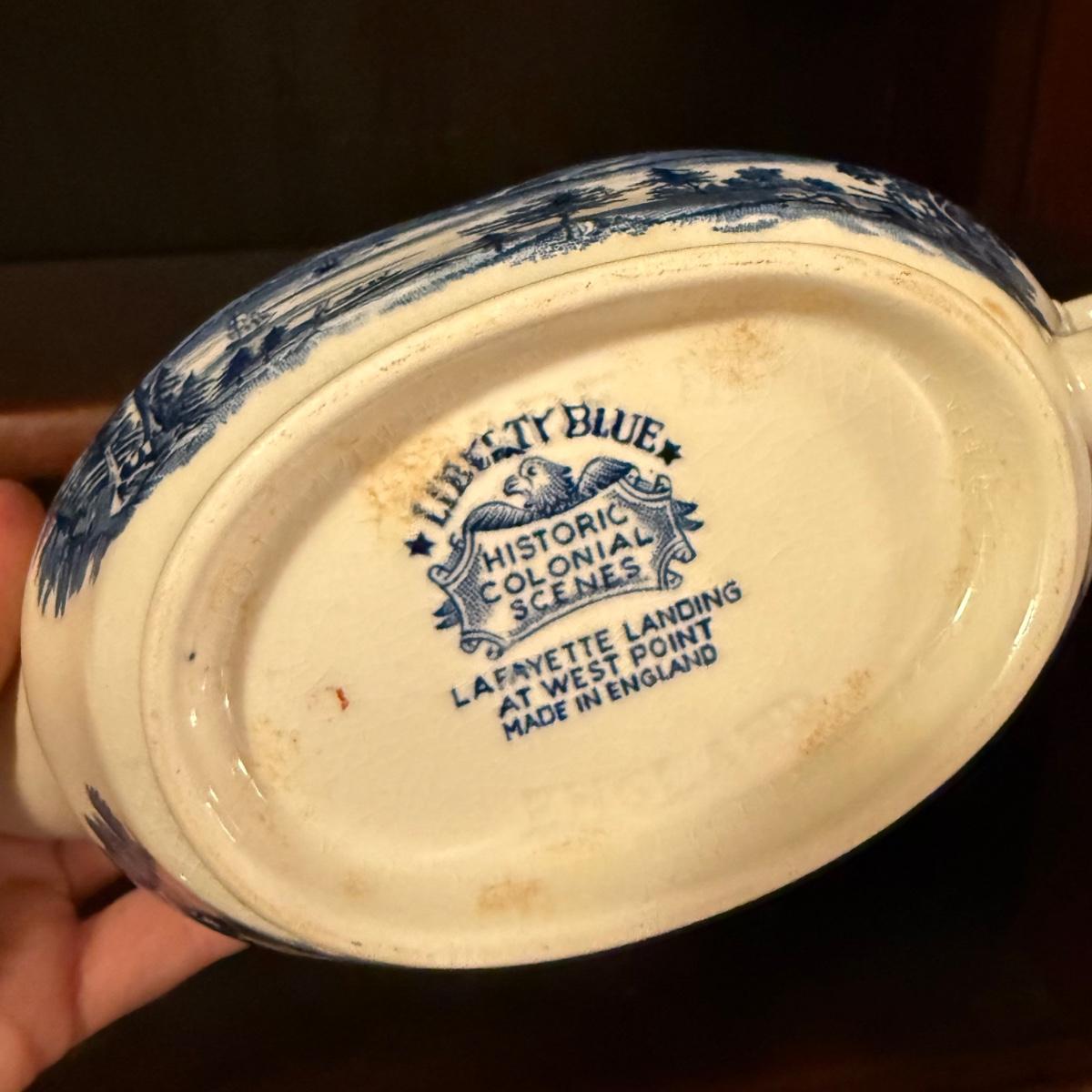 200+ pieces of Staffordshire ironstone dishes in their Liberty Blue pattern. this large collection includes five sizes of plates (4”, 6”, 7”, 9”, 10”), plus multiple bowls, cups, saucers, serving plates, salt and pepper shakers, and more. Please see photos for inventory. All dishes were not thoroughly inspected, but only two chips were noticed.