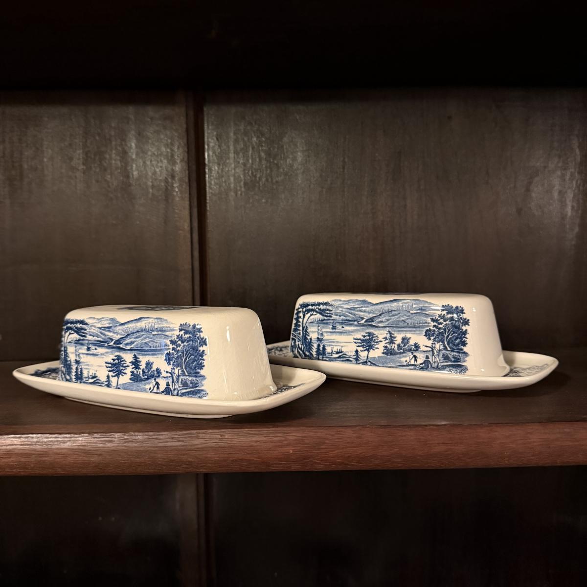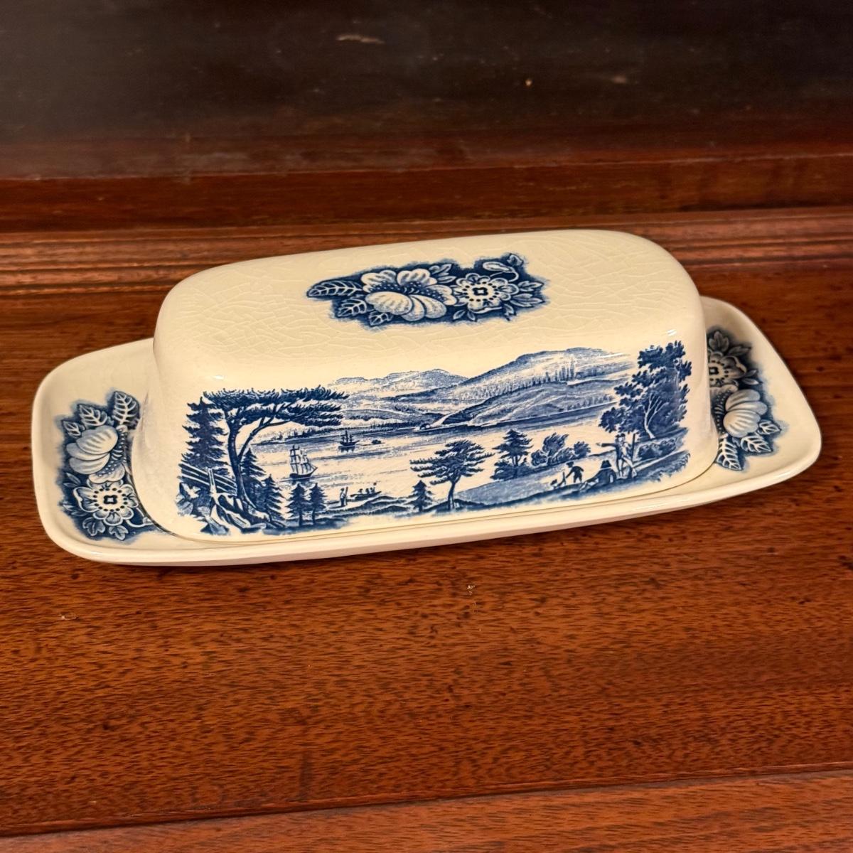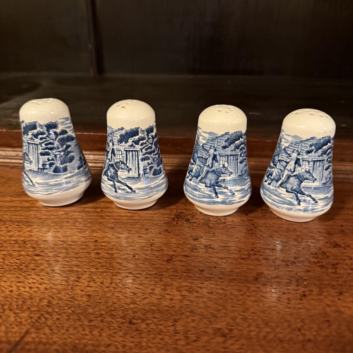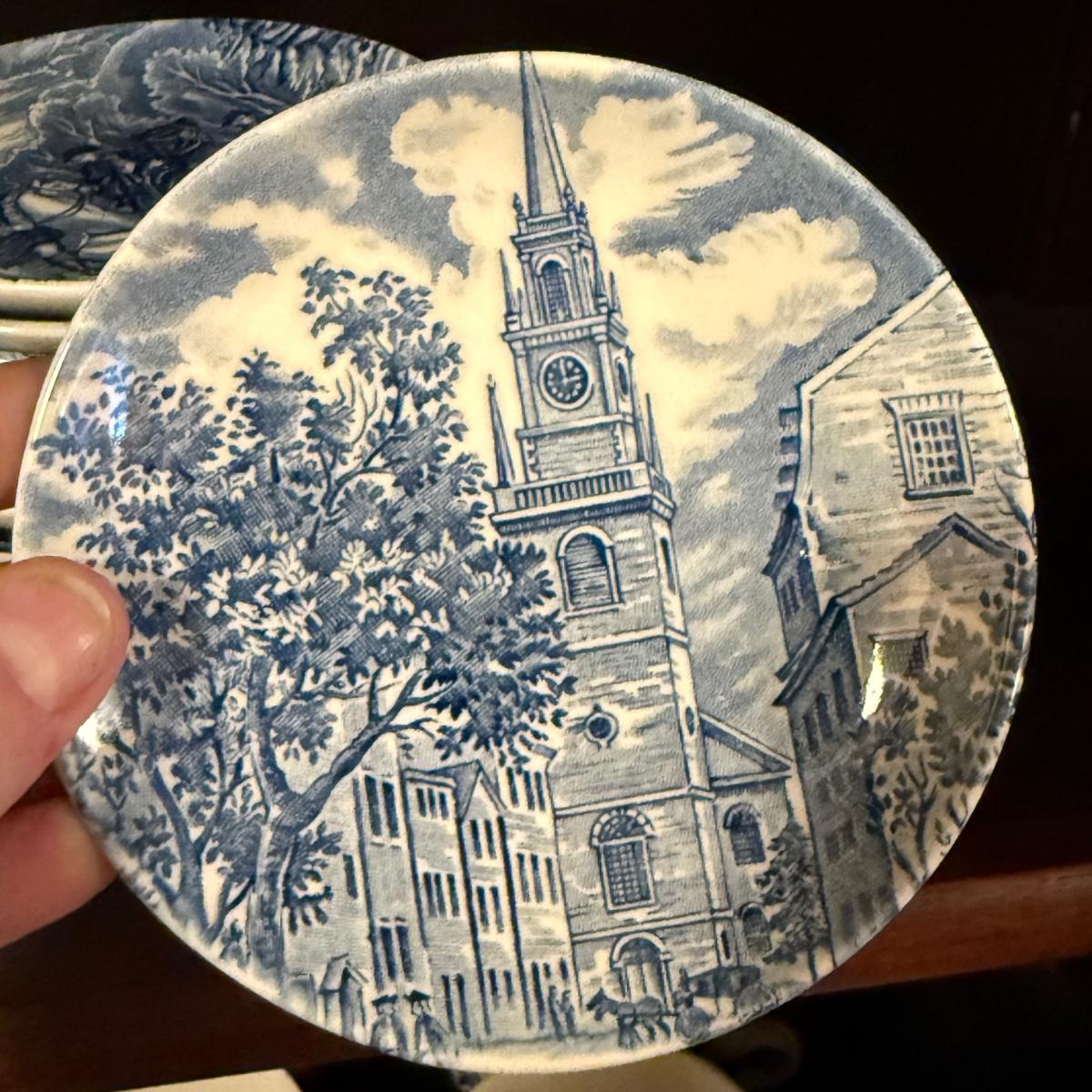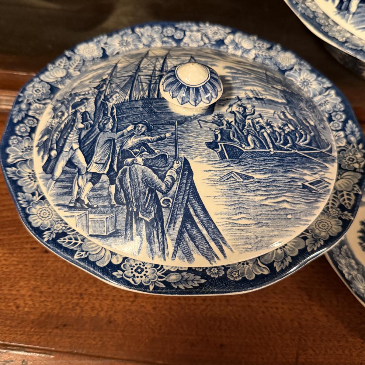 200+ pieces of Staffordshire ironstone dishes in their Liberty Blue pattern. this large collection includes five sizes of plates (4”, 6”, 7”, 9”, 10”), plus multiple bowls, cups, saucers, serving plates, salt and pepper shakers, and more. Please see photos for inventory. All dishes were not thoroughly inspected, but only two chips were noticed.