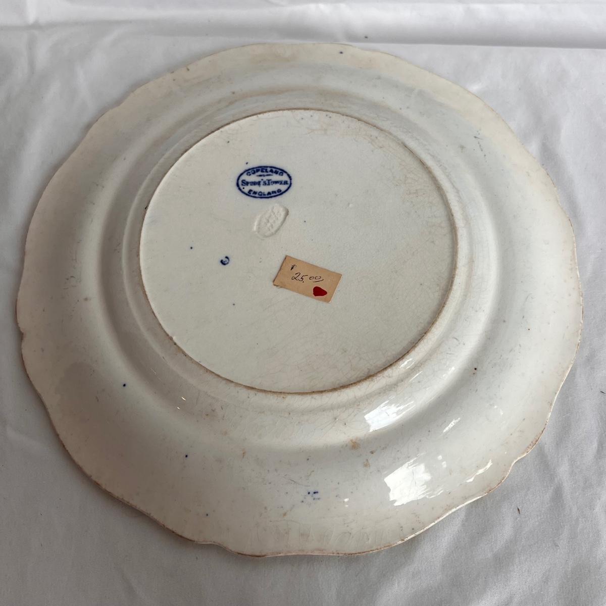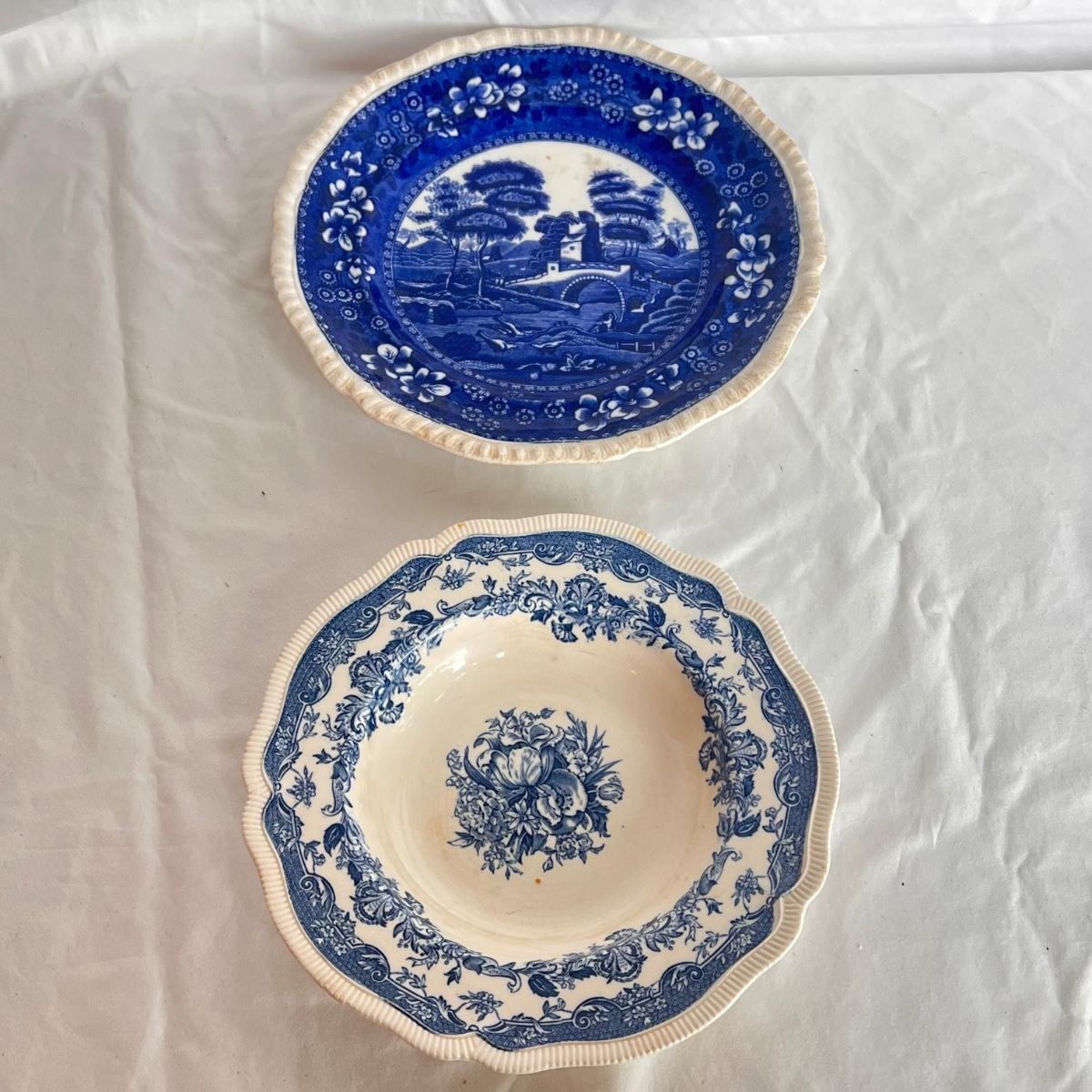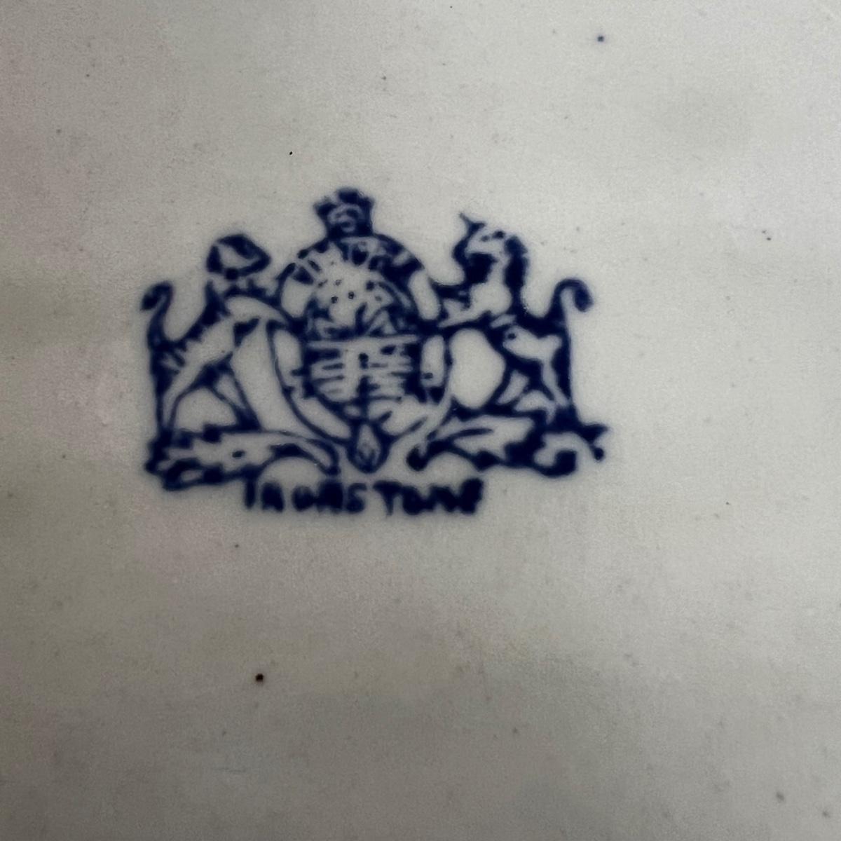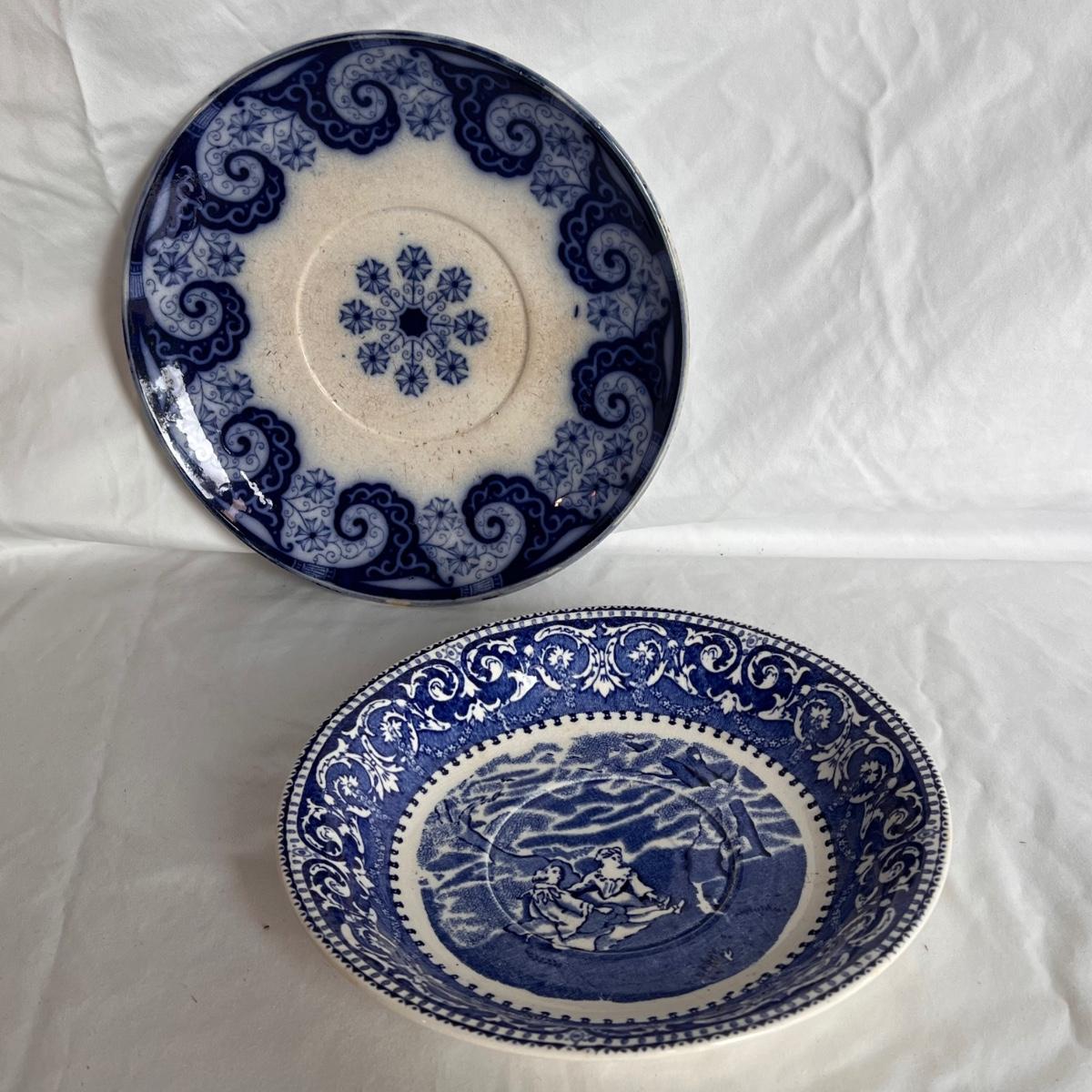 This lot includes two Takahashi small dishes, four Staffordshire bowls, one Asahi plate, two Copeland England dishes, one hanging plate by Royal Crownford, one Grindley plate, one Johnson Bros Persian Tulip plate, one Olde Historical Pottery plate, and a few other dishes that are not stamped or have illegible stamps. The largest plate measures 10.5” x 1”H and the smallest (Takahashi plates) measure 4.75” x .95”H. There is a small crack in the last bowl pictured and some crazing on a few other pieces - see pictures included. Shipping available.