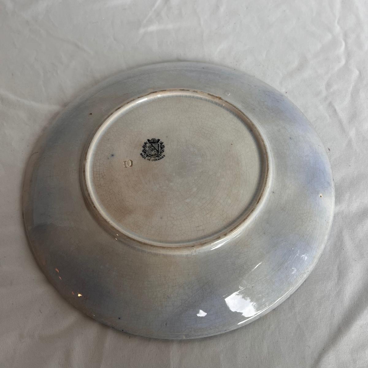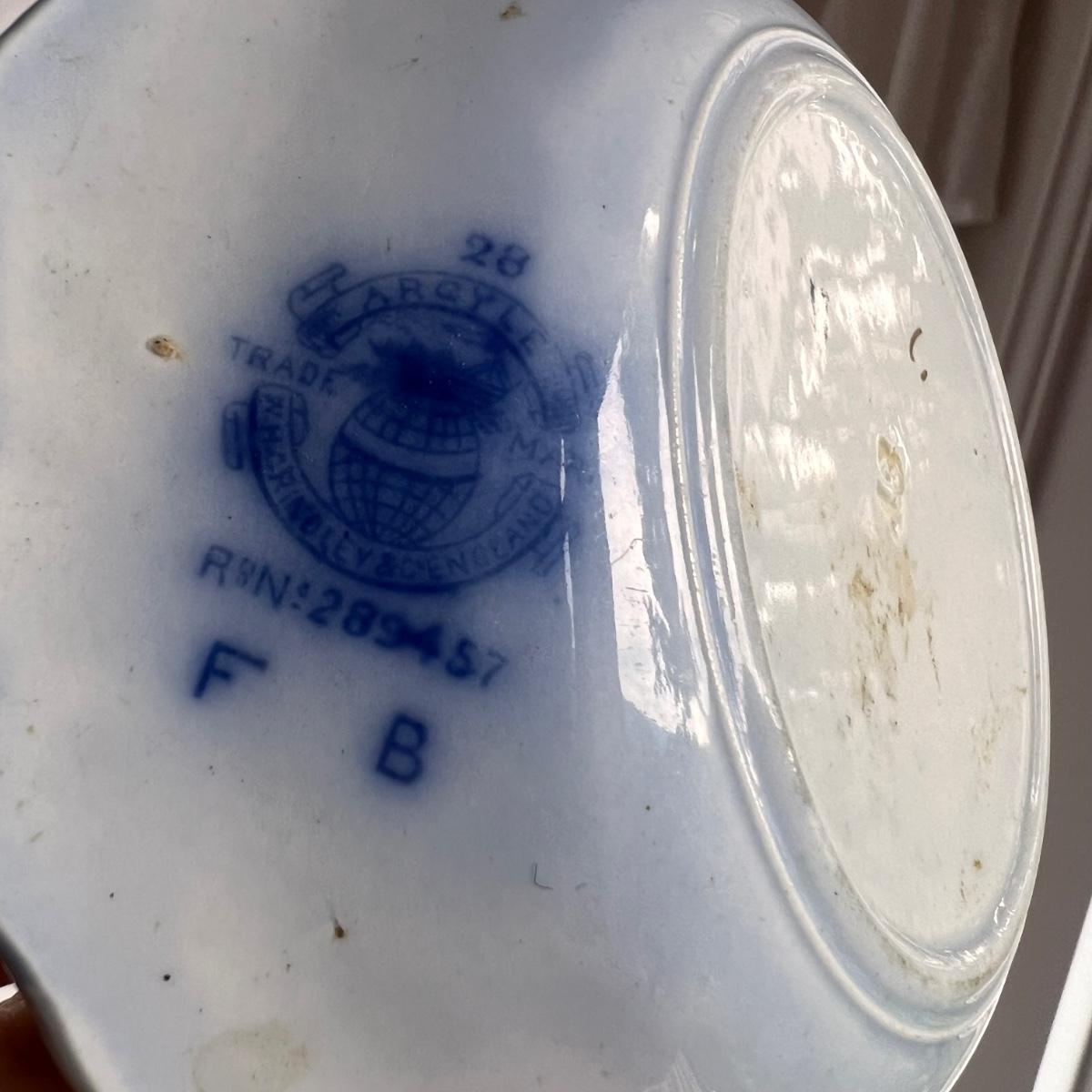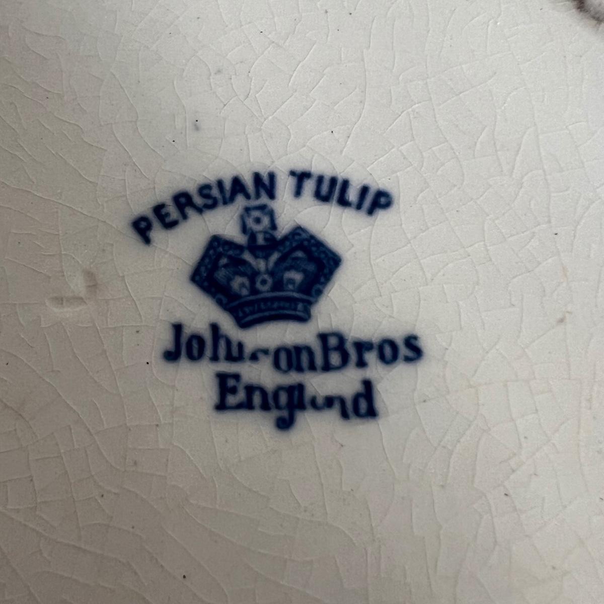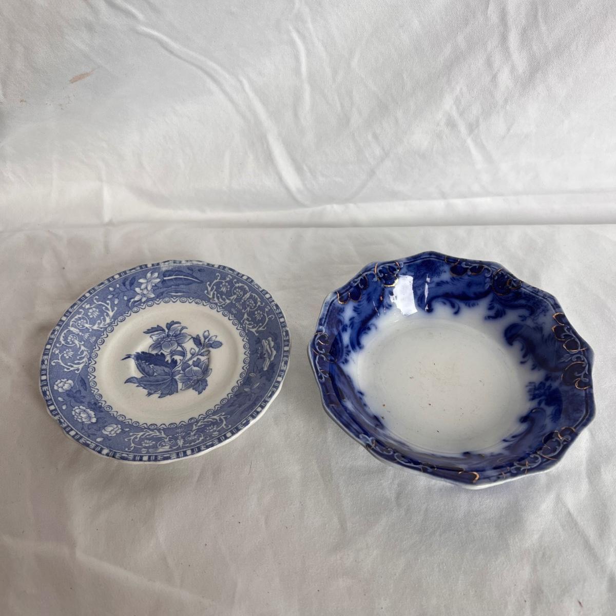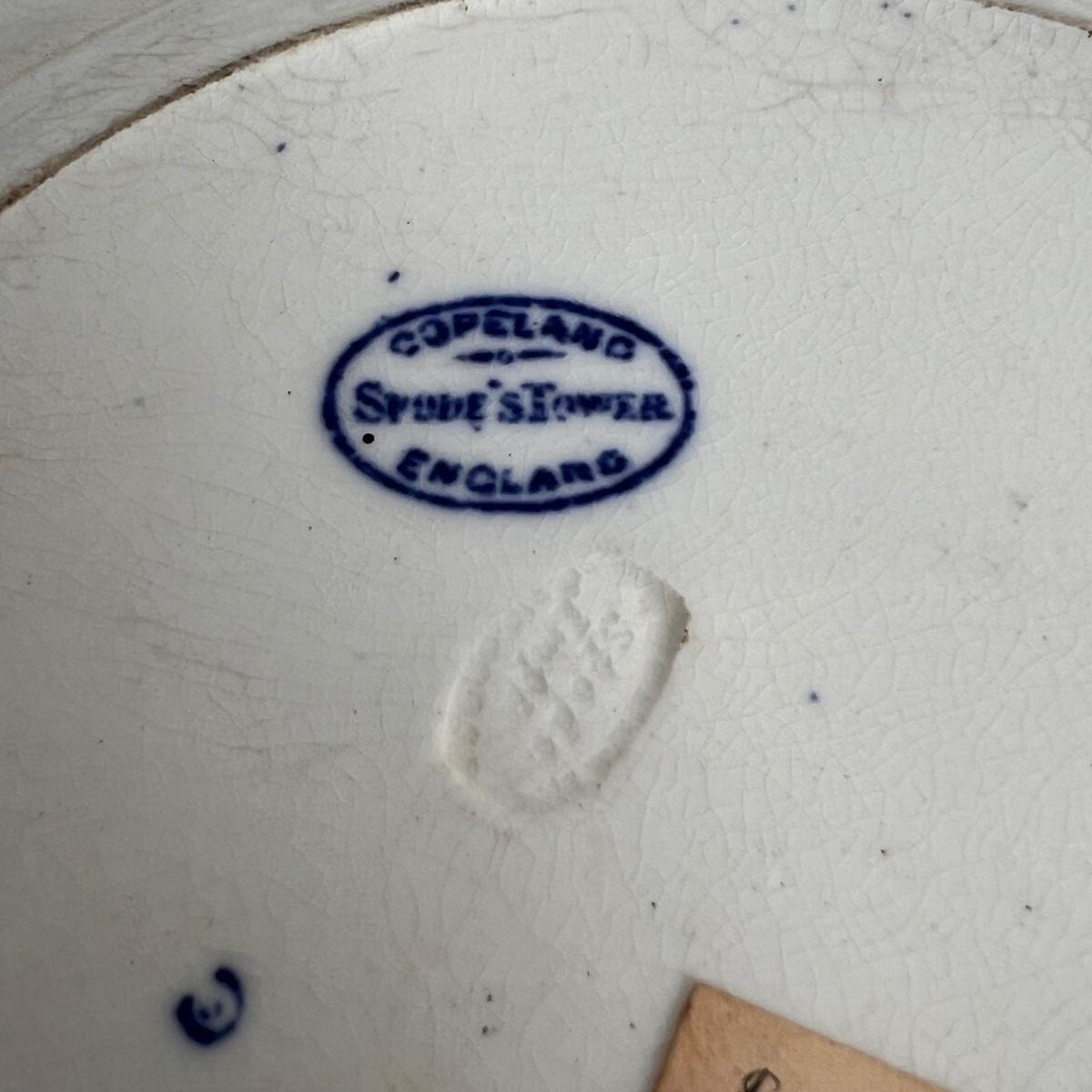 This lot includes two Takahashi small dishes, four Staffordshire bowls, one Asahi plate, two Copeland England dishes, one hanging plate by Royal Crownford, one Grindley plate, one Johnson Bros Persian Tulip plate, one Olde Historical Pottery plate, and a few other dishes that are not stamped or have illegible stamps. The largest plate measures 10.5” x 1”H and the smallest (Takahashi plates) measure 4.75” x .95”H. There is a small crack in the last bowl pictured and some crazing on a few other pieces - see pictures included. Shipping available.