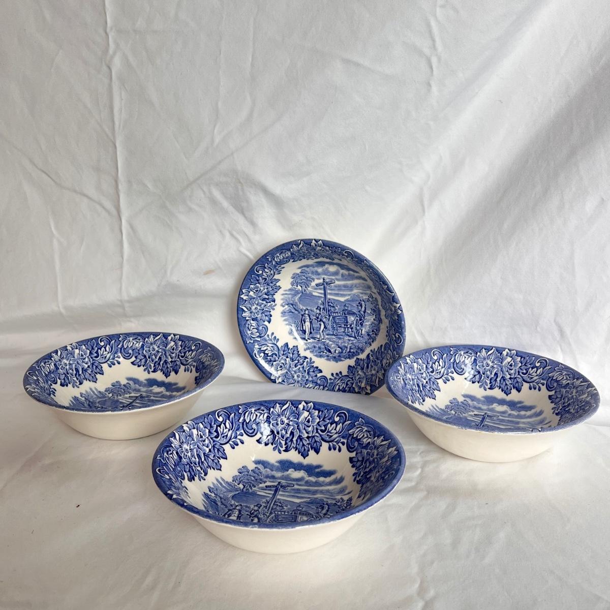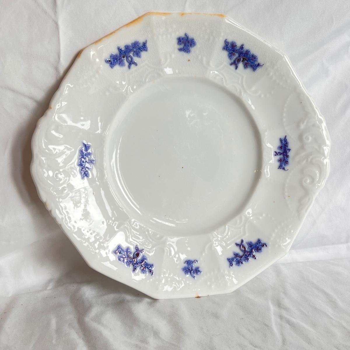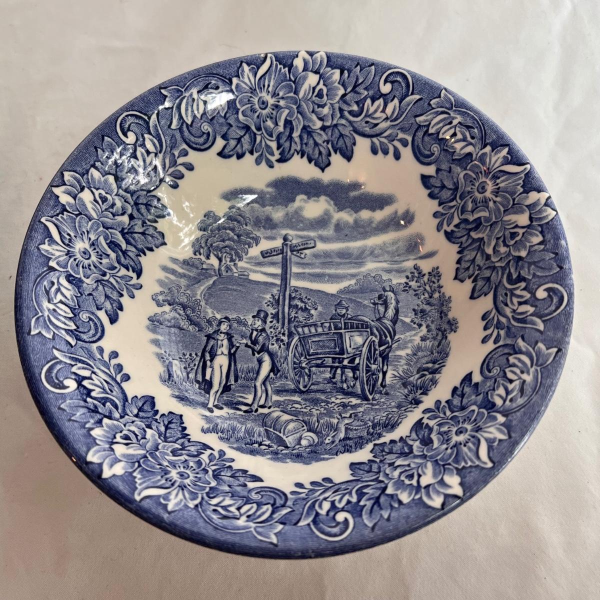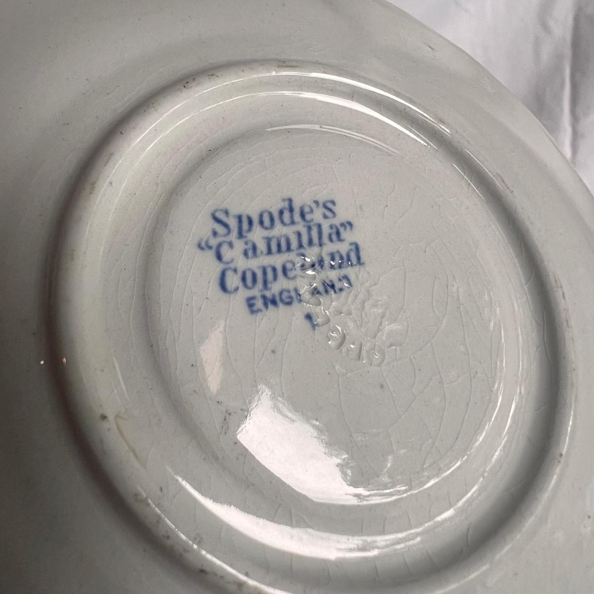 This lot includes two Takahashi small dishes, four Staffordshire bowls, one Asahi plate, two Copeland England dishes, one hanging plate by Royal Crownford, one Grindley plate, one Johnson Bros Persian Tulip plate, one Olde Historical Pottery plate, and a few other dishes that are not stamped or have illegible stamps. The largest plate measures 10.5” x 1”H and the smallest (Takahashi plates) measure 4.75” x .95”H. There is a small crack in the last bowl pictured and some crazing on a few other pieces - see pictures included. Shipping available.