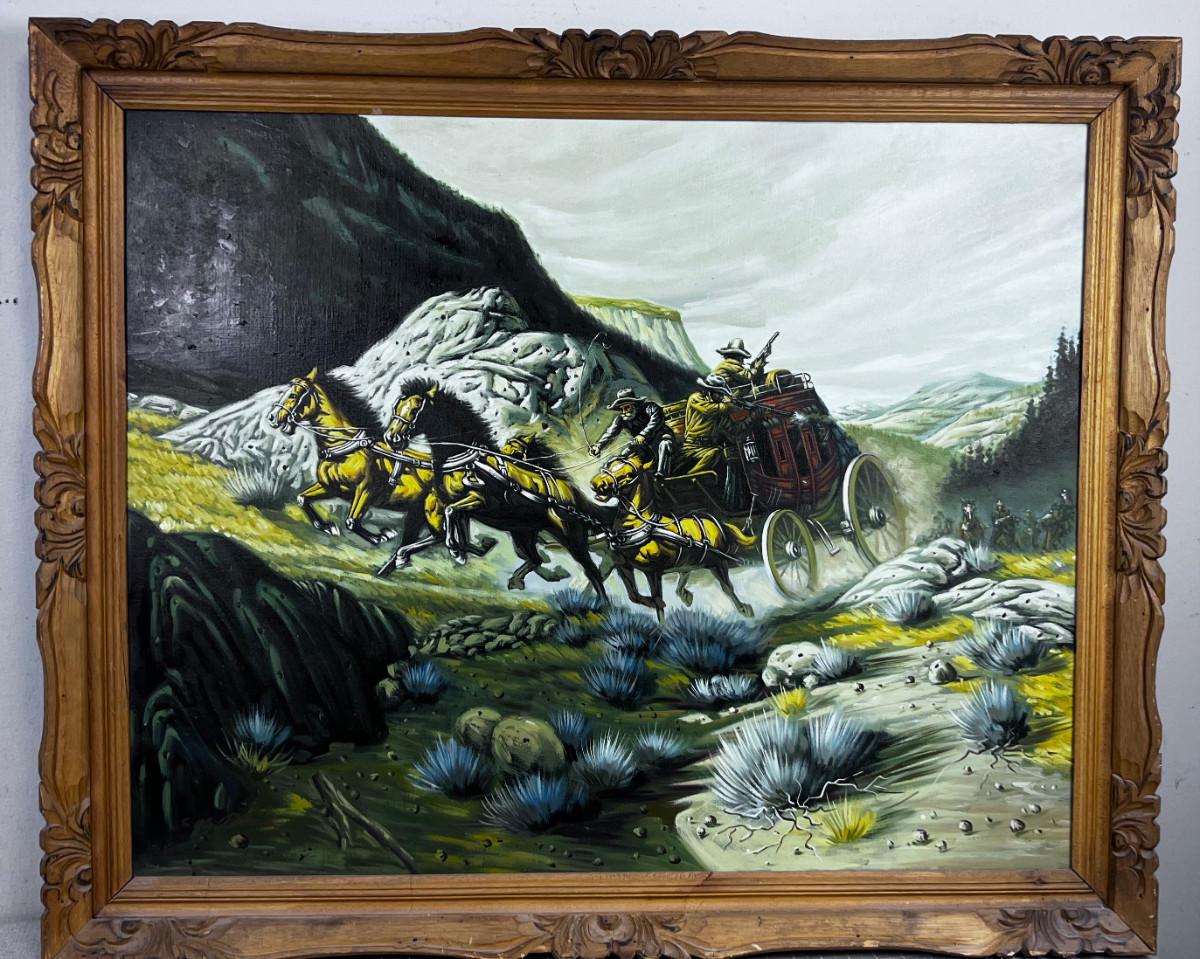 Stage Coach Actual Painting Acrylic Singed by C.S. Park