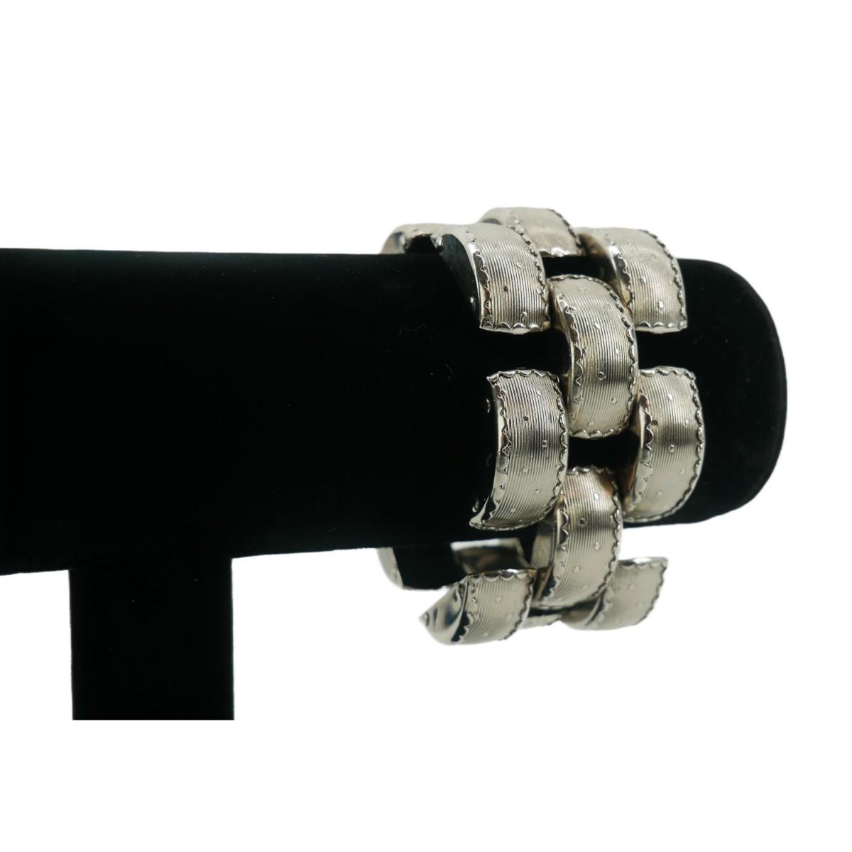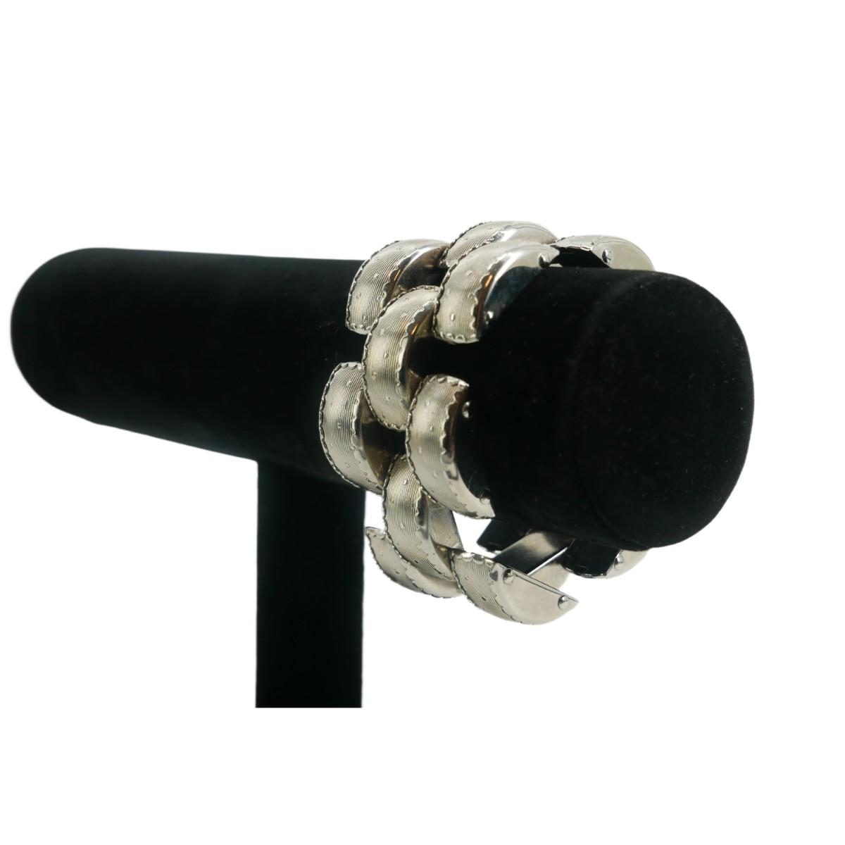Stunning staggered brick rectangle cuff bracelet with wonderful detail. Measures approximately 8" in length and 1.5" in height, weighs 87g.