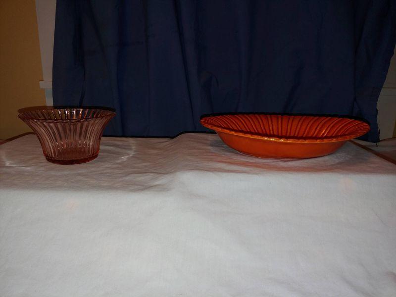 Please Don't Let The Sales Tax etc Scare You Away; There Is None; Can Pay In Cash. Potter lug handheld USA 1388 10” bowl and a pink candy dish. Final Estate Sale! Everything Must Go! Rock Bottom Prices!