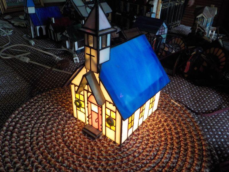 :Stain Glass Church with lights "