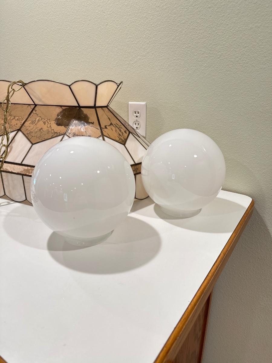 Light shade of pink ~ Excellent condition with no cracks or chips in glass ~ has 2 globes for internal lighting ~ fixture measures 12.5” H x 41” W x 16” D ~ has 30” chain