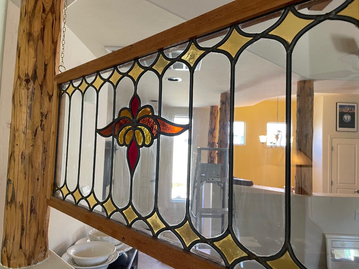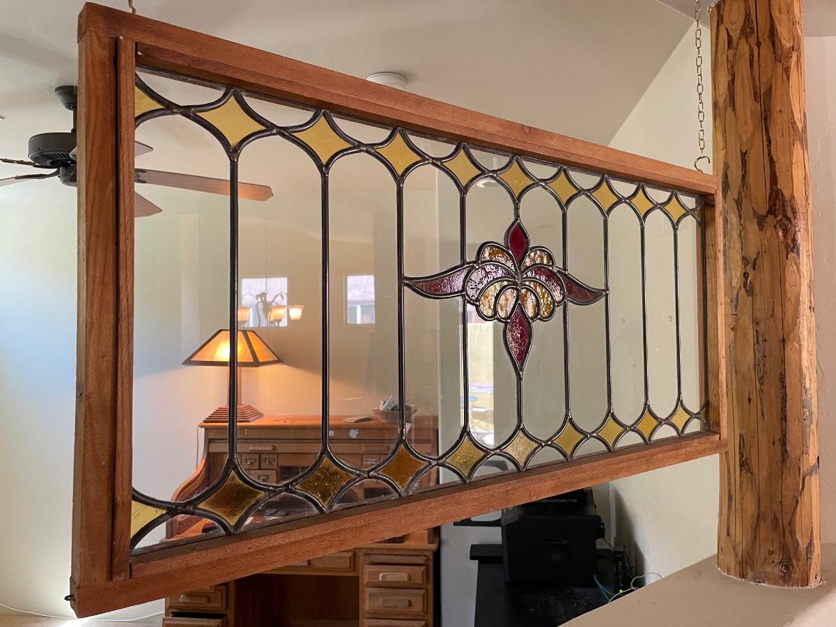Stained glass art with design in great condition. (40inX1.5inX19in)