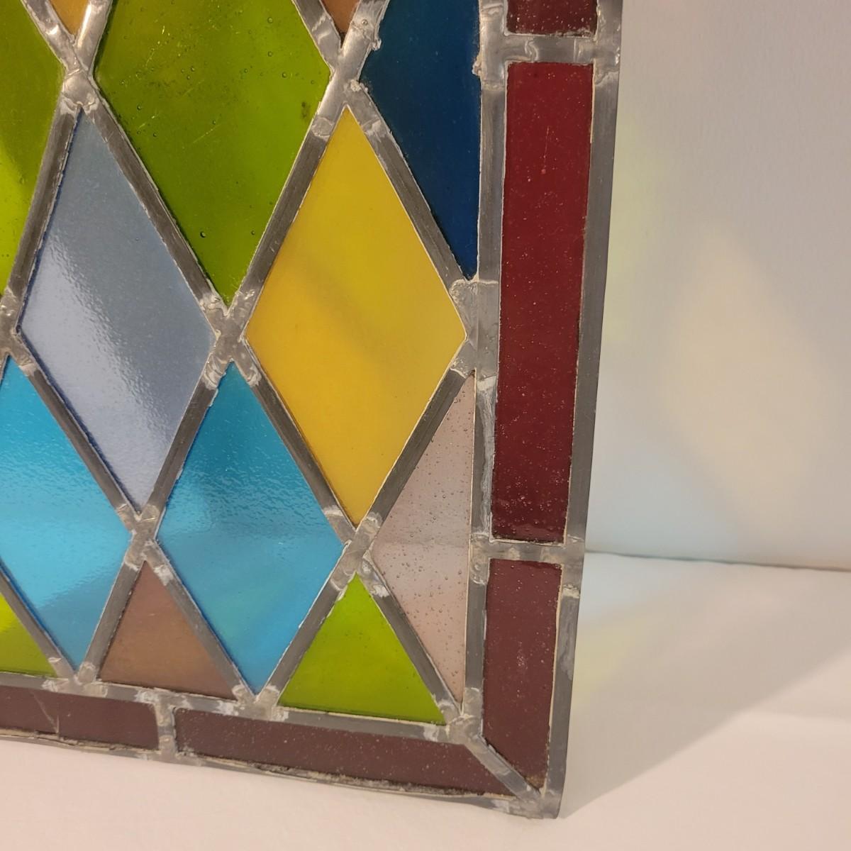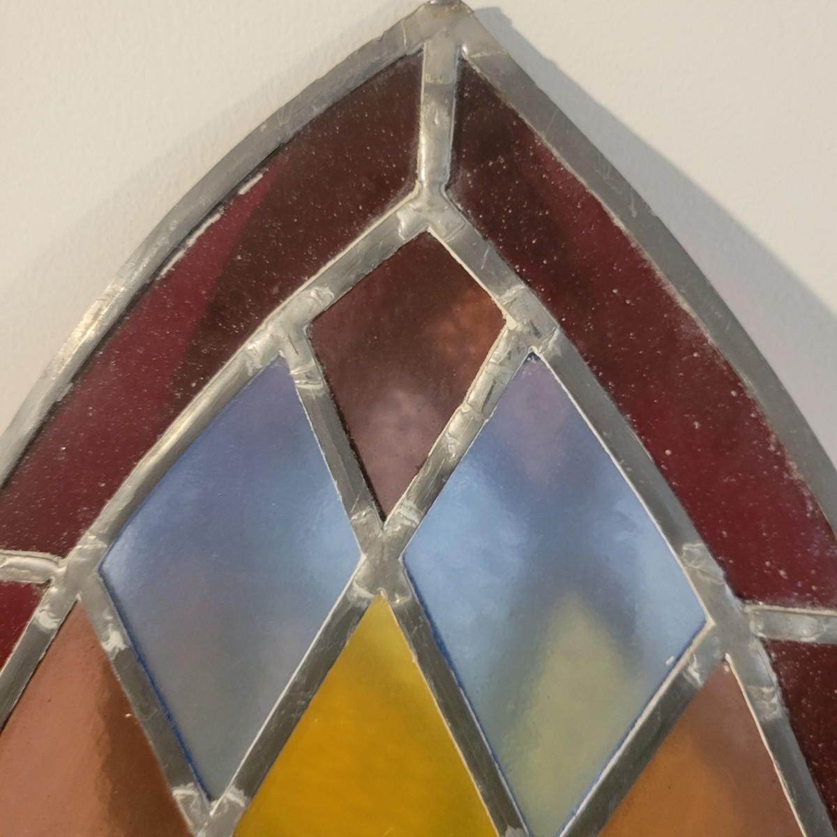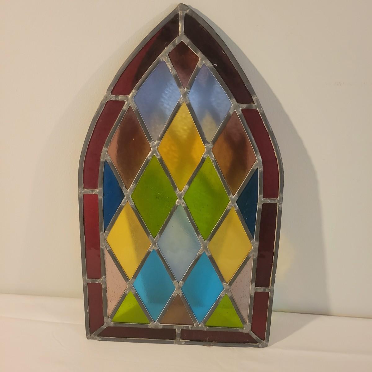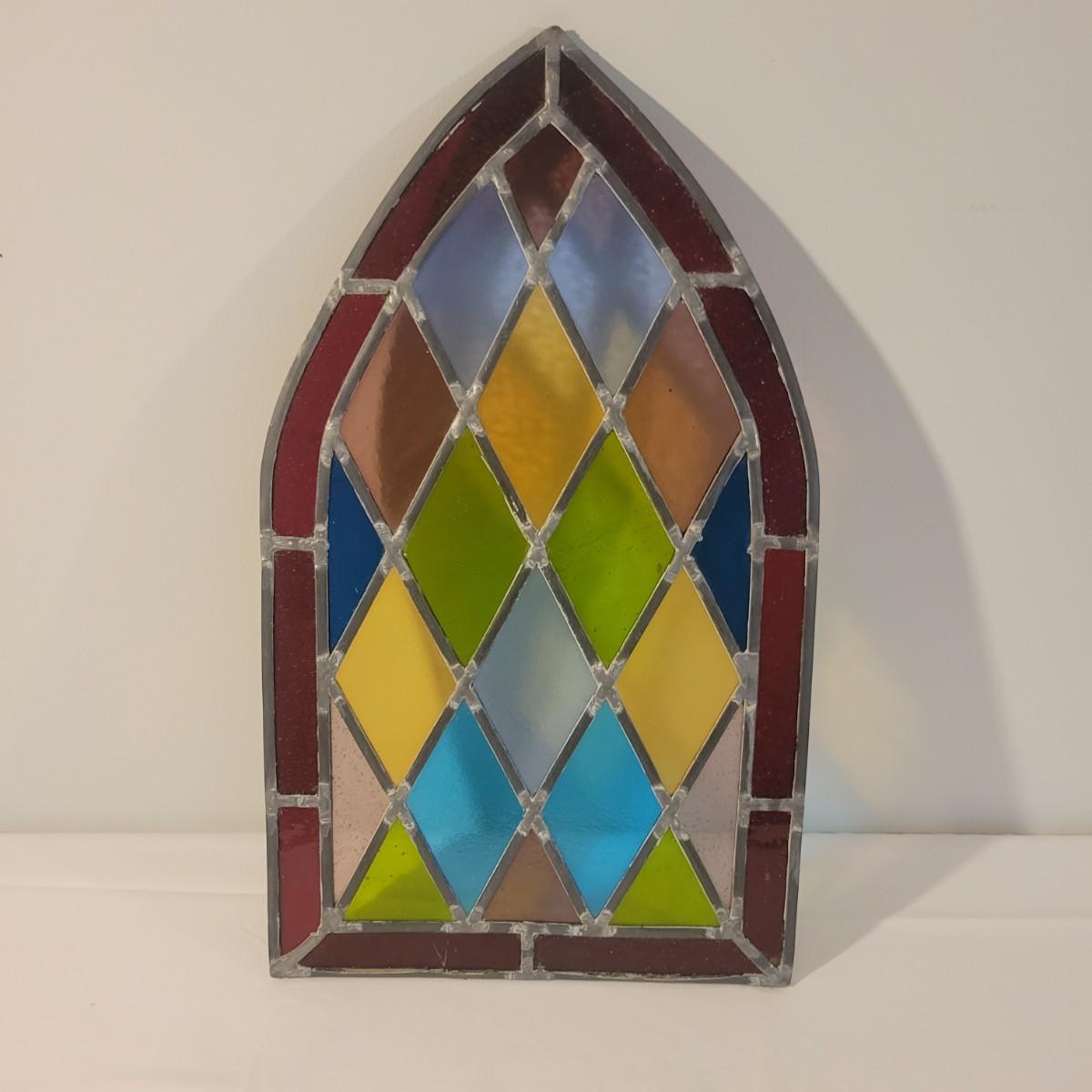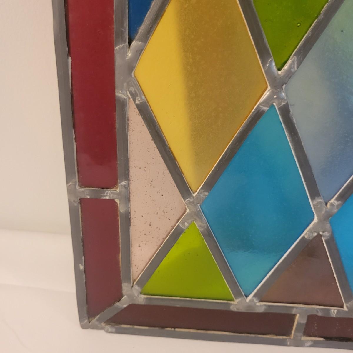 A beautiful piece of stained glass art in good condition. All pieces of glass are intact and unbroken. Measures approximately 12" x 21" Shipping available