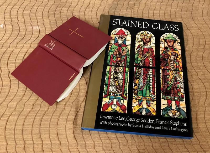 Excellent condition on this book about the art of Stained Glass..hardcover...a tear on the back of the cover sheet...and the Anglican Book of Common Prayer....