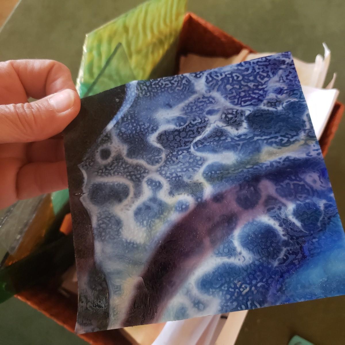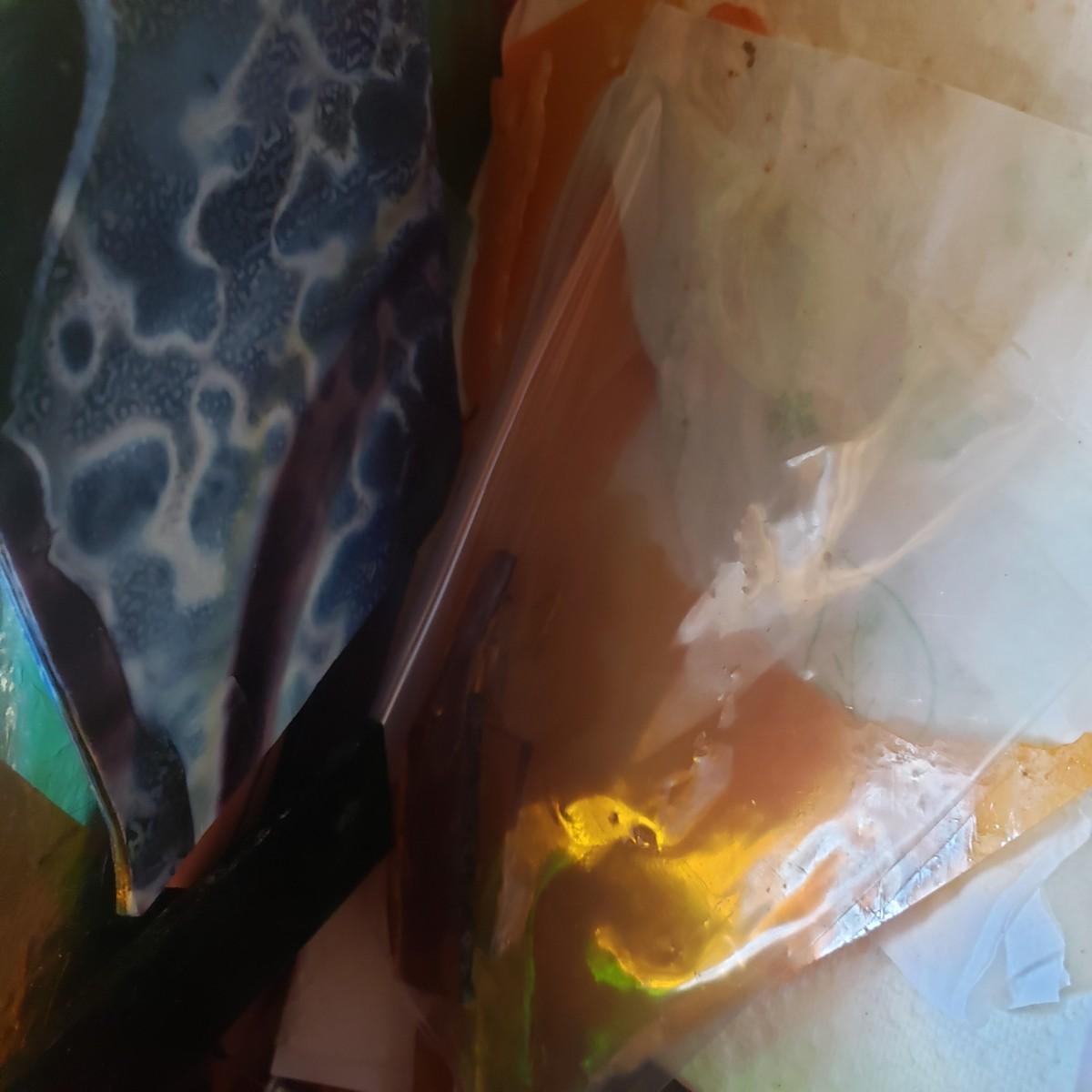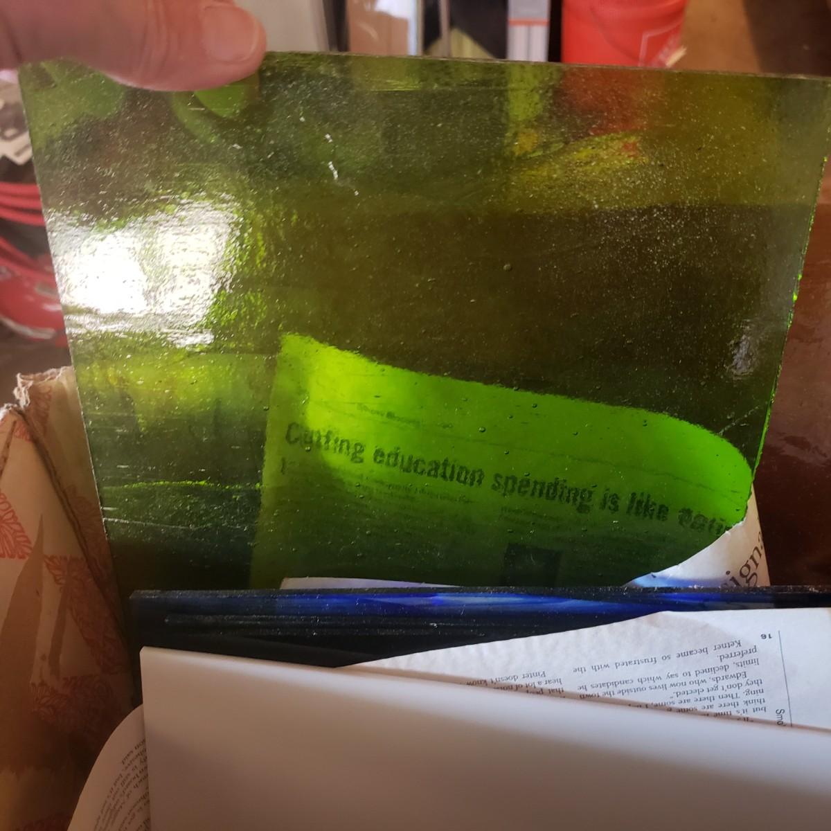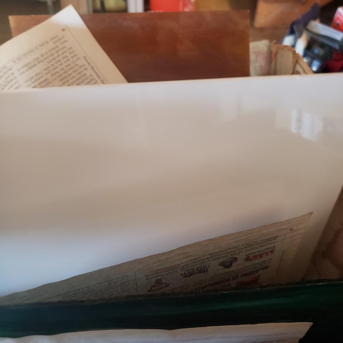 This stained glass lot has everything you need to start the process! There are tools and glass to get you going. The box of glass has sheets and pieces. The largest piece measuring 14" x 12". There is a rectangular basket layered with small pieces between paper, see pictures. There is a handmade copper foil dispenser! See pictures for details.
