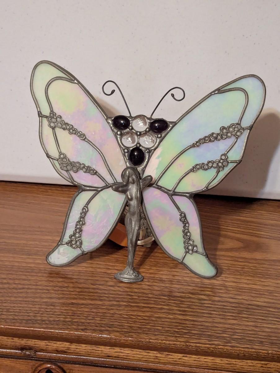 Approx 10" Tall Stained Glass Fairy Illuminated Light