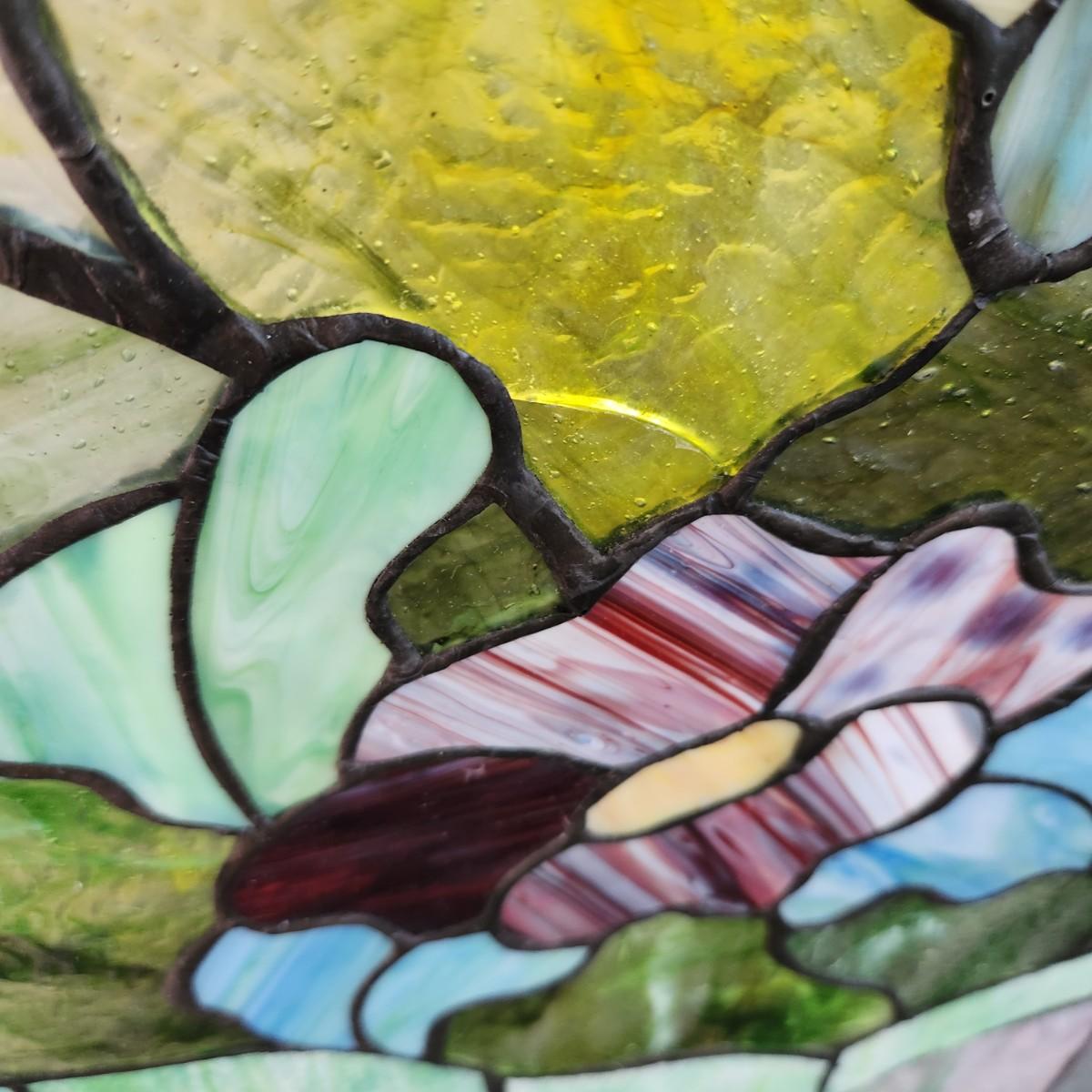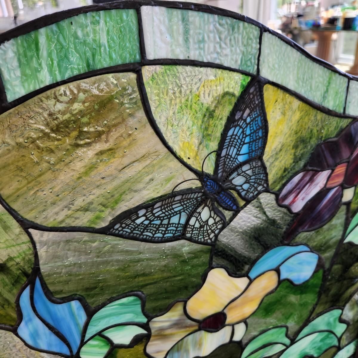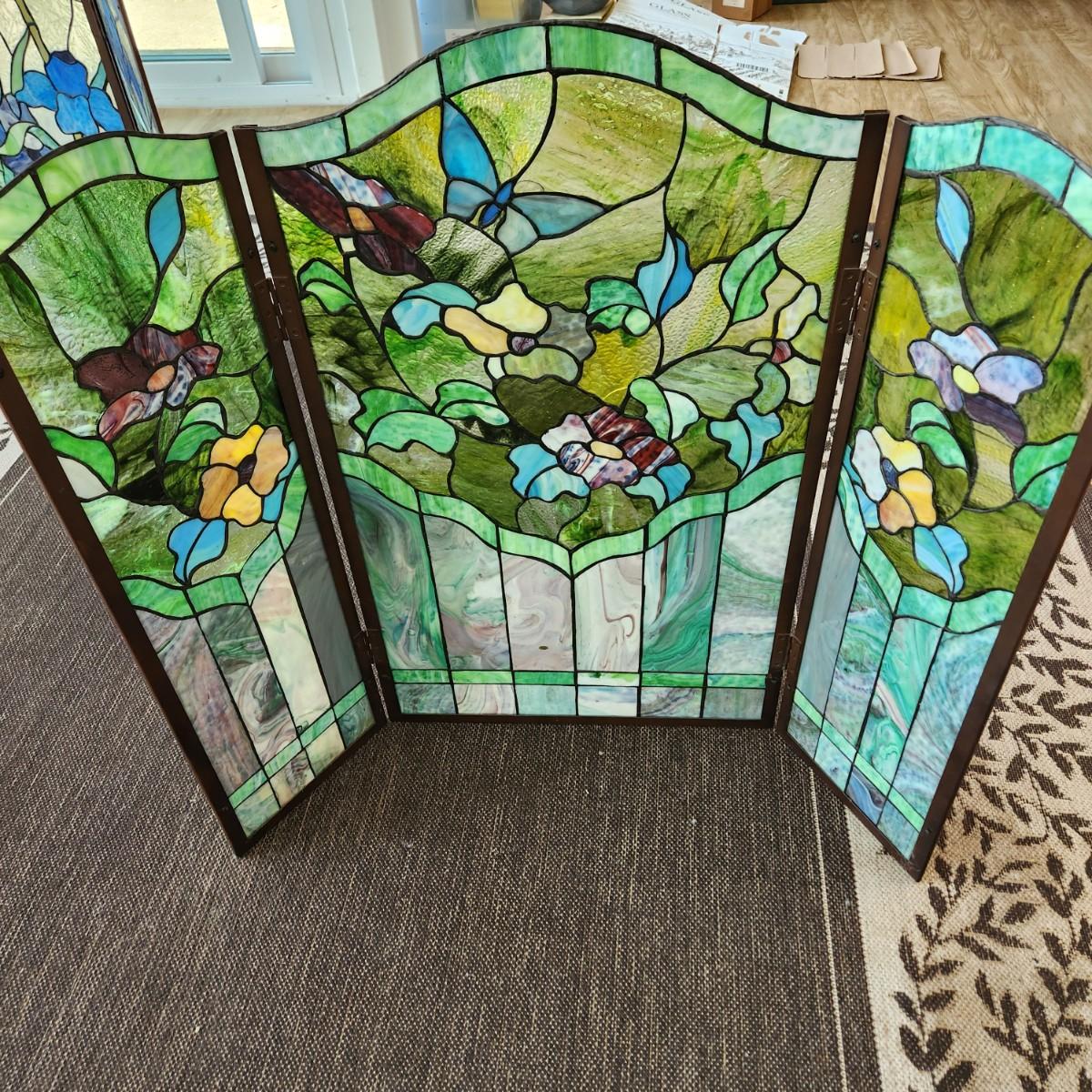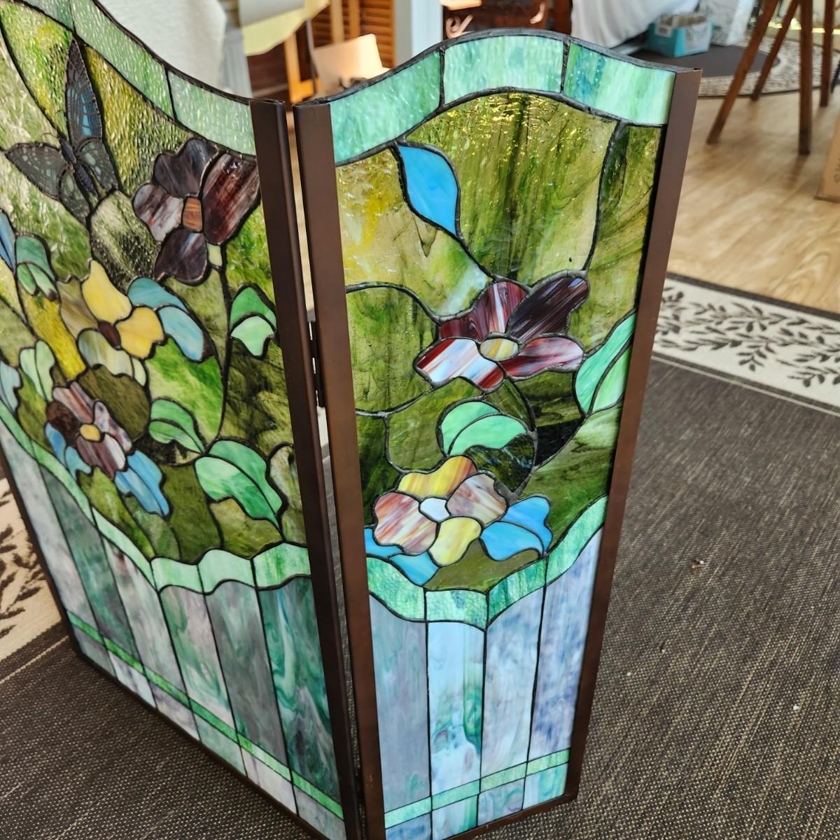Heavy Stained Glass Fireplace Screen Flowers Butterfly 50"×34"h