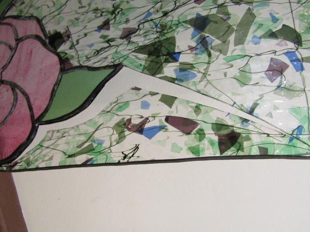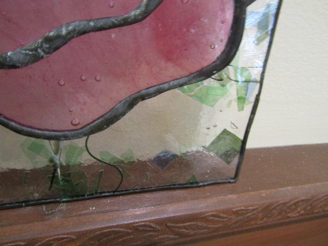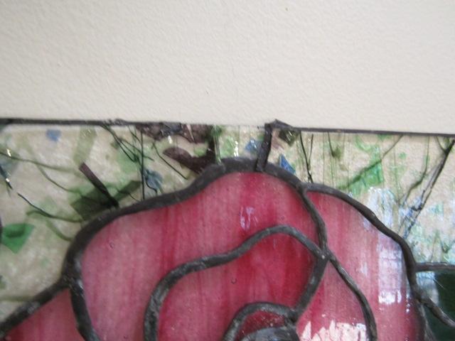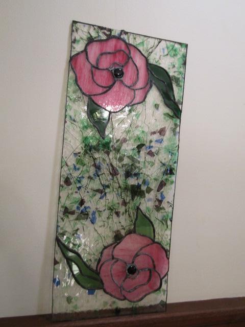 Stained Glass for Projects. Panel with flowers has some cracking and metal framing is not complete. Please see pictures.