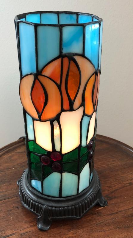 Small stained glass lamp, working condition. If you require shipping please be aware that the cost of shipping may be more than what the item cost. All items ship from zip code 84109, you can go to USPS.com for estimates of cost.
