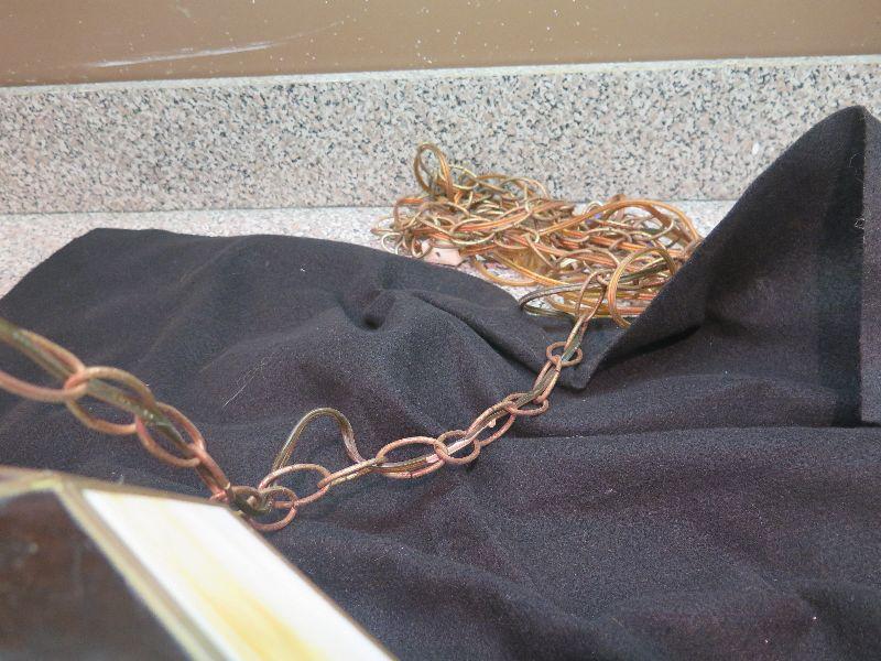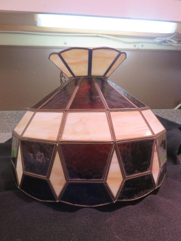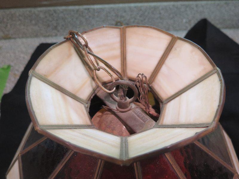 Vintage stained glass hanging light. UntestedPlease read Terms and Conditions before placing a bid. Pick up is Friday, October 25th between 4 and 7, and Saturday, October 26th between 9 and 1. Props included in photos are not included in listing. All measurements are approximate. Comes from home with cats.