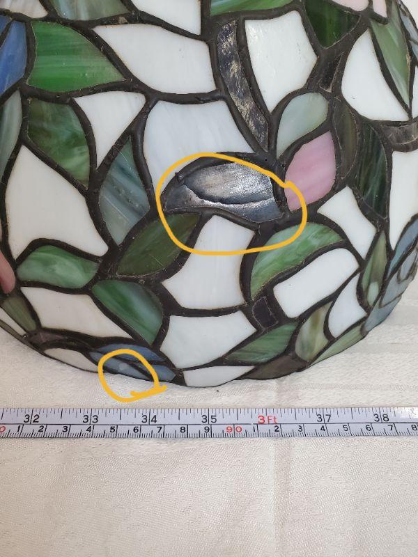 Lamp looks beautiful on or off. A few pieces of glass have cracked but none of them are noticeable....