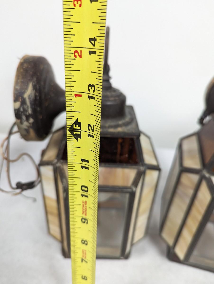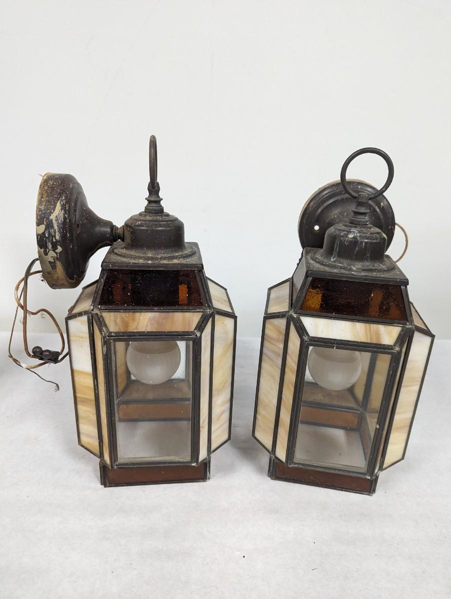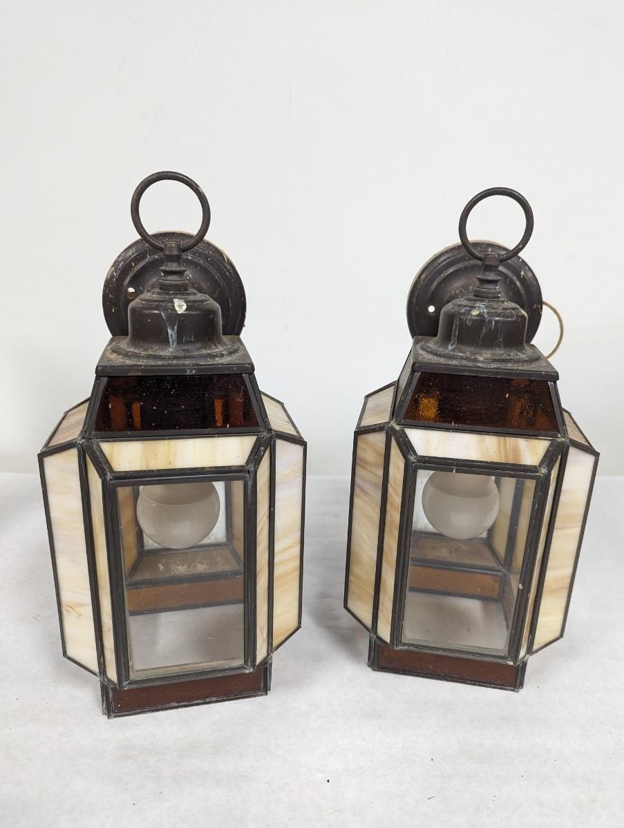 Pair of Stained-Glass Wall Sconce Electric Lanterns