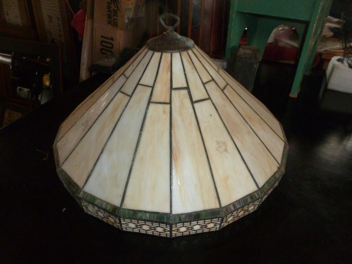 Stained Glass Light Shade. Approx 19" in diameter, 12" tall.