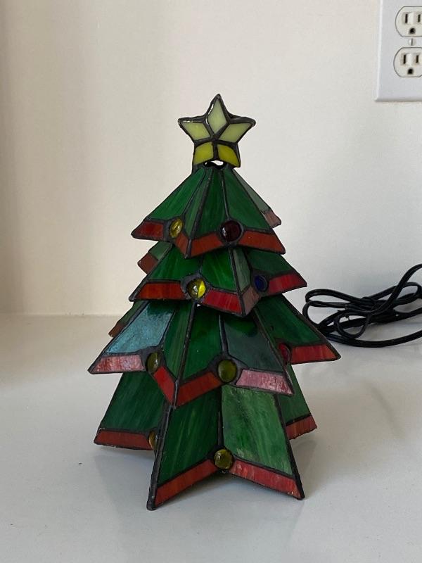 Stained Glass Lighted Tabletop Christmas Tree