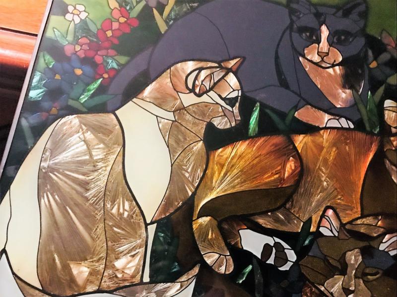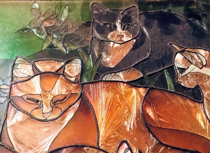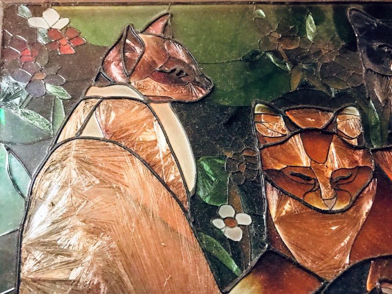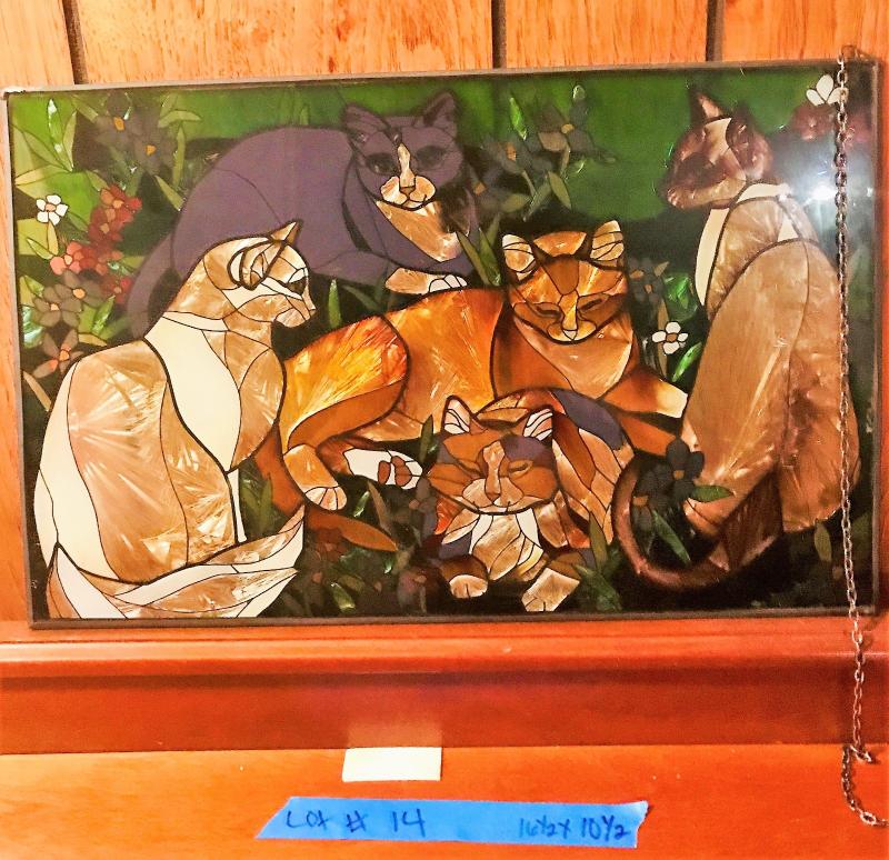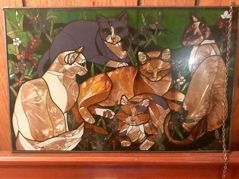 Cats mural colored with foil. There is some wear look at pictures closely. Measurements 16.5x10.5 inches