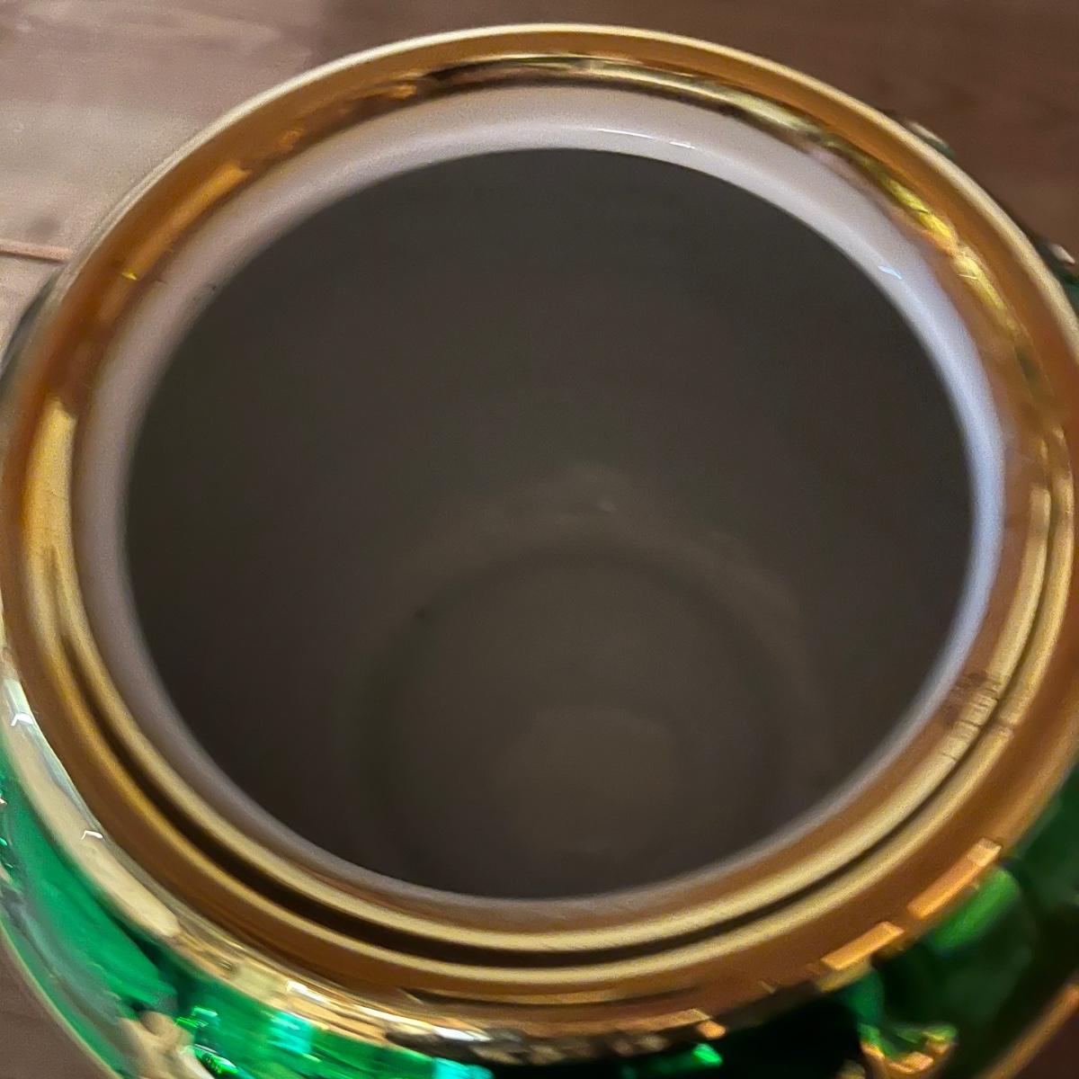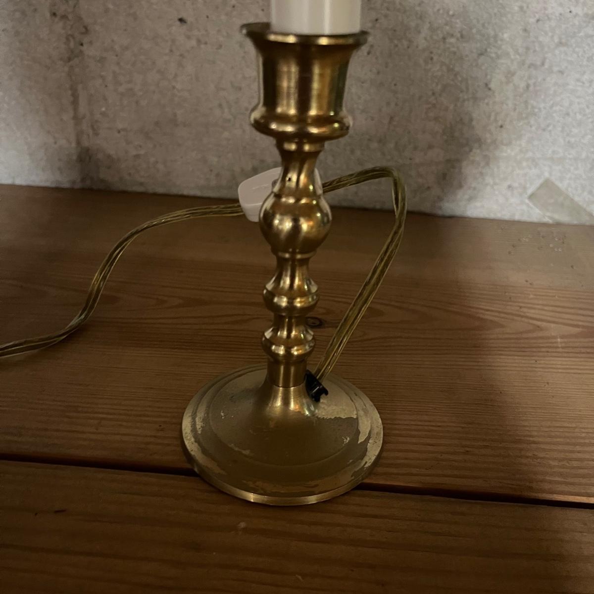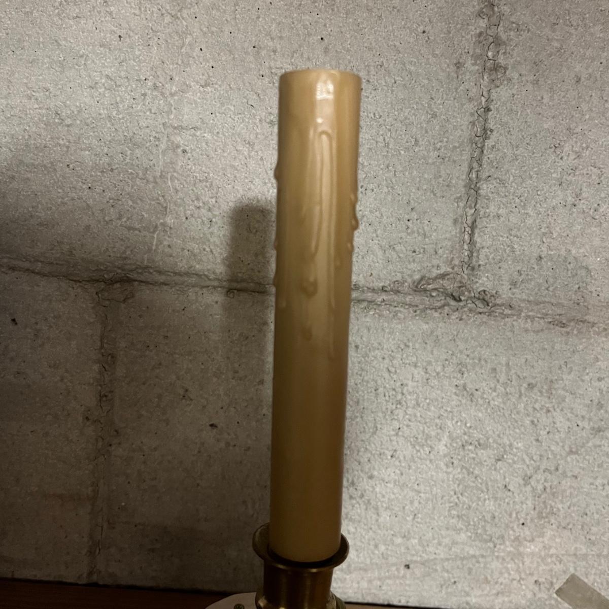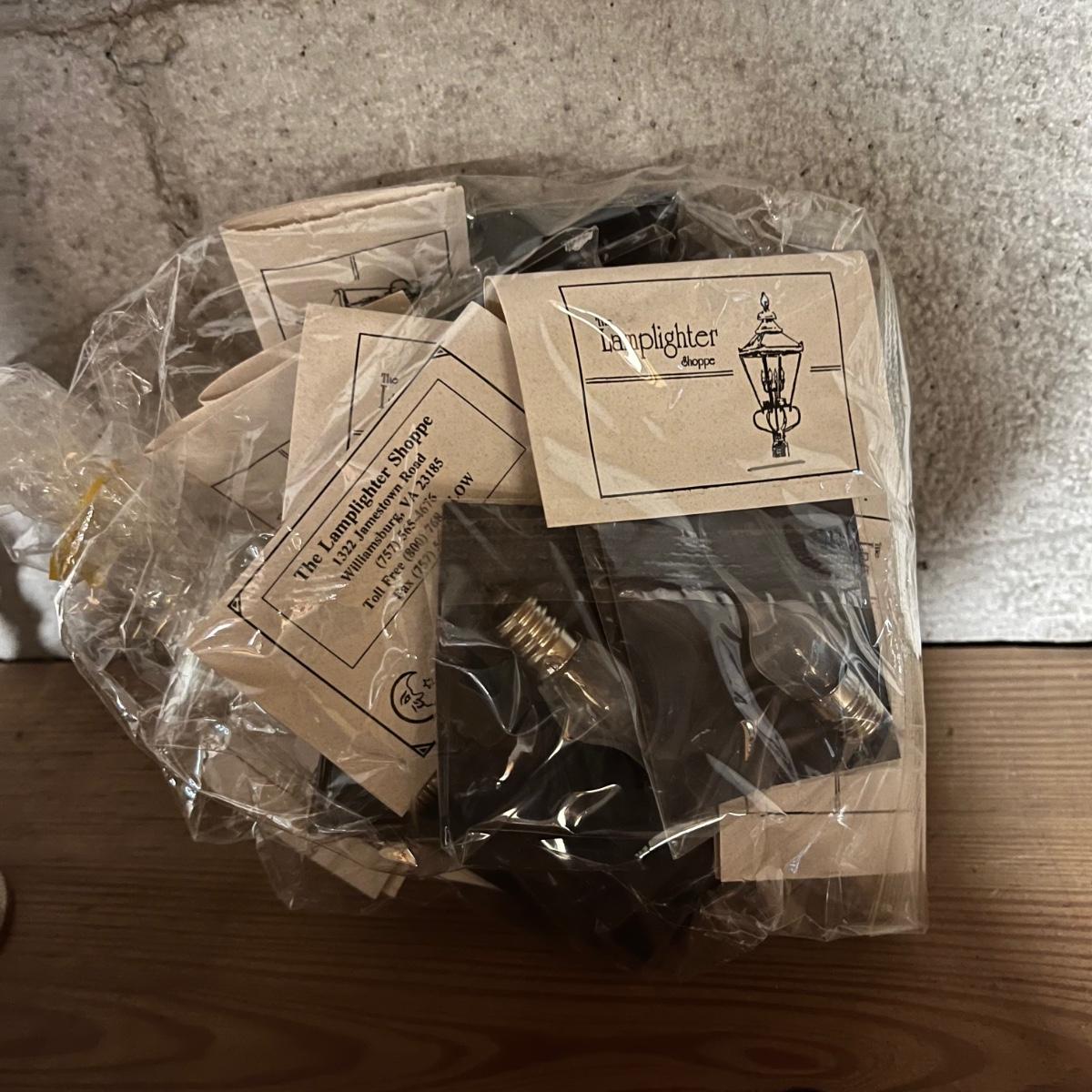 This Lot includes an eight piece stained glass nativity set, an ornament shaped jar, a brass candlestick lamp with extra beeswax cylinders and bulbs. The extra candlestick cylinders are beeswax. Ornament shaped jar measures 8”D x 10” tall. Lamp worked when tested.