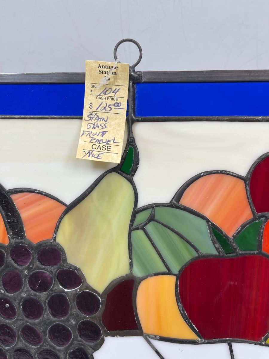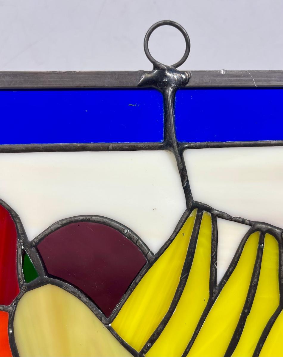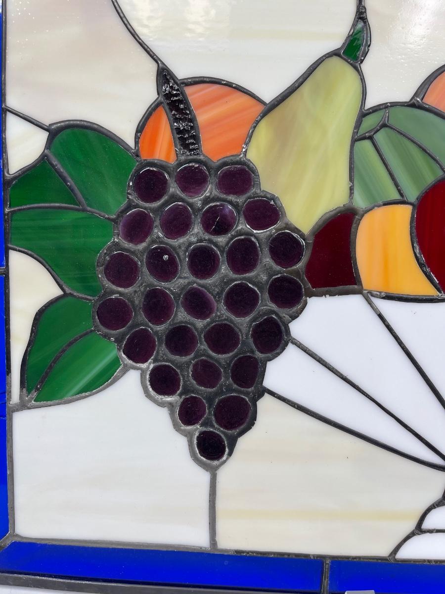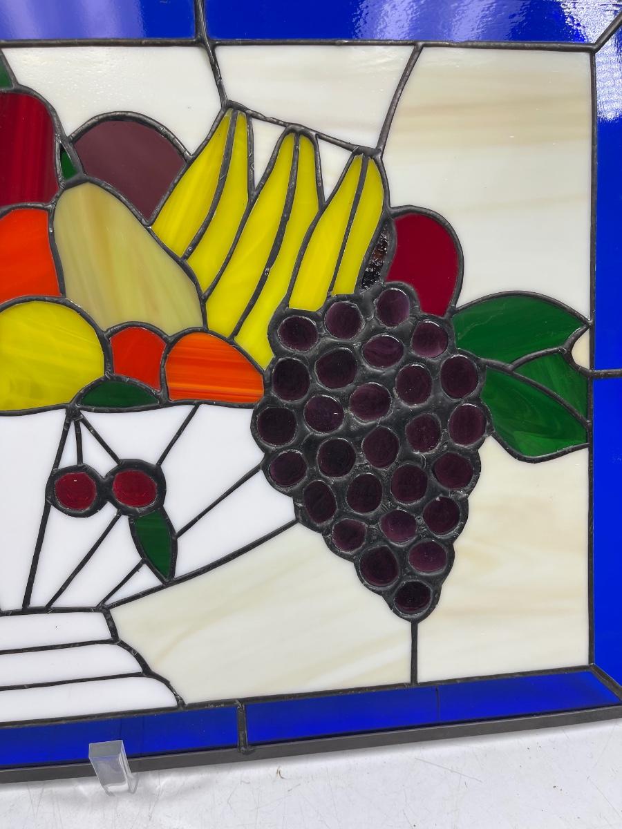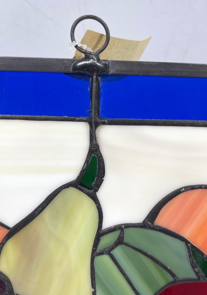 Stained Glass Rectangular Panel Stilllife Bowl of Fruit with Cobalt Blue Border Handcrafted